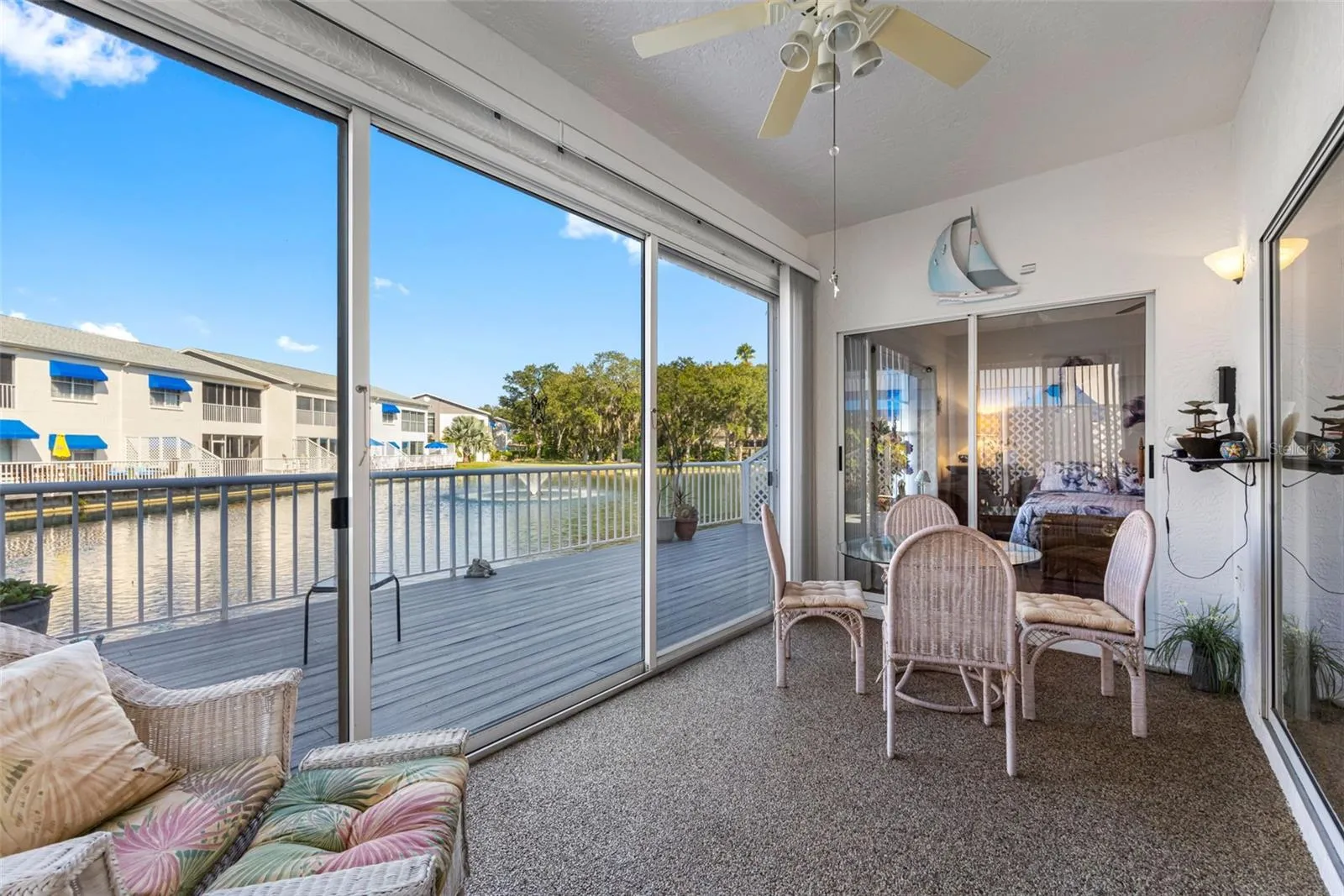 Extremely rare Furnished 1st Floor, Corner Unit, 3 Bedroom/2 Bath Villa, 1 Car Garage, located on a serene pond with a large 10’x32′ composite deck, only minutes to Indian Rocks Beach! Enjoy peace of mind with no assessments, milestone inspection exempt, and no flooding during last year’s storms. The kitchen has white cabinets, recently installed quartz countertops, a closet pantry, bar seating, and a dinette area with views of the courtyard. The Primary Bedroom has sliders to the covered porch and views of the water, en-suite bath, walk-in closet. The split plan design offers two bedrooms and a full bath on the other side of the home. There is a closet laundry Plenty of additional space with Shipwatch sits on 56 acres along the Intracoastal with 11 Har-Tru tennis courts, walking trails, pickleball, a private marina with 32 deeded boat slips, fitness center, tennis pro shop, two swimming pools, and lots of planned social activities. This property is perfect for full time or seasonal residents since it can come furnished if desired.