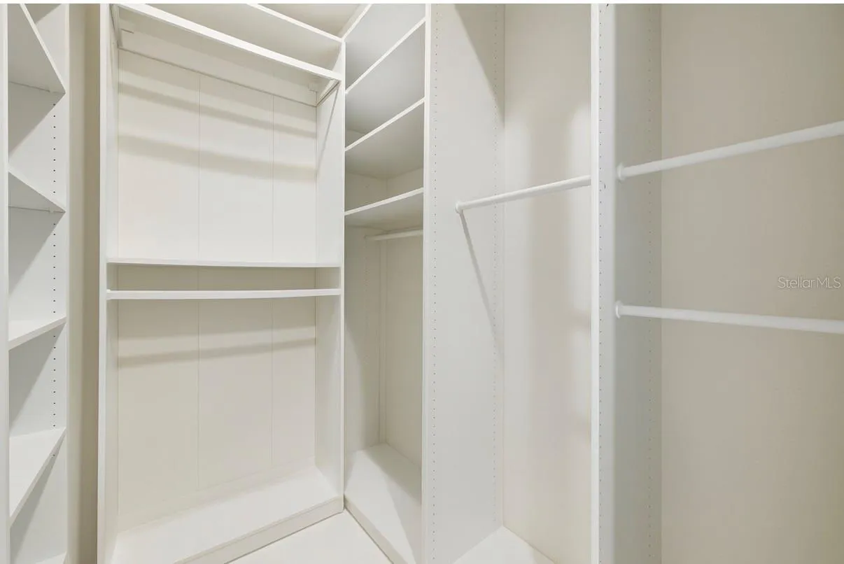 The owner’s suite includes a luxury frameless glass walk-in shower, dual quartz vanities, a linen closet, and elegant finishes.. Additional interior upgrades include designer tile flooring throughout, crown molding, 8’ interior doors, comfort-height toilets, and brushed nickel hardware. The laundry room features Whirlpool washer and dryer, quartz countertop, a utility sink, and upgraded cabinetry.
