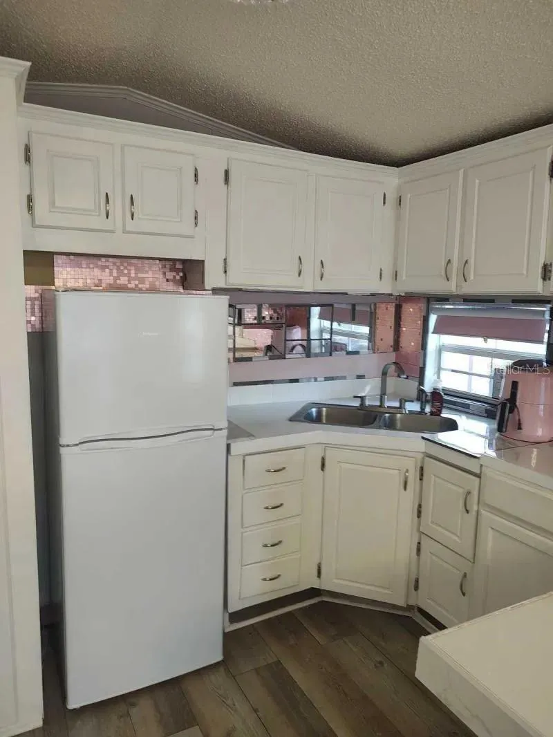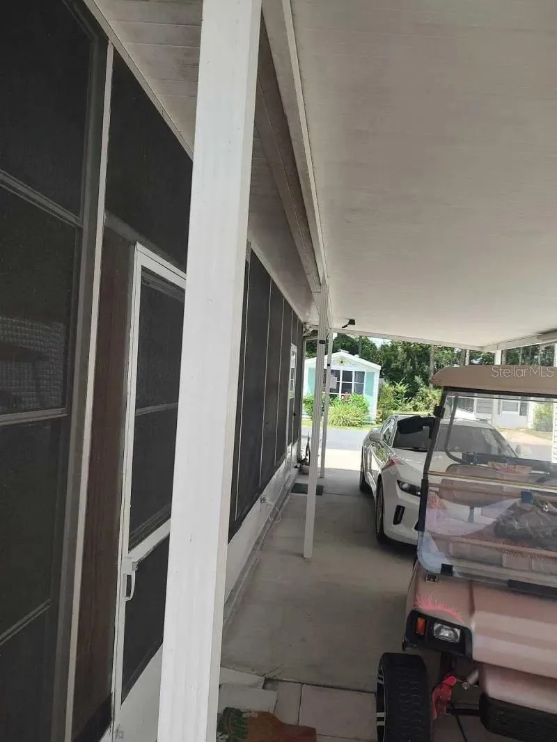 ENCLOSED FLORIDA ROOM! 12×36 heated living space, SLAB Florida room and LAUNDRY ROOM! NEW REFRIGERATOR (2025); KITCHEN REMODEL (2025); BATHROOM REMODEL (2024); WATER HEATER (2023); HVAC (2019); TERMITE INSPECTION (2019); ROOF (2015); Sliding Glass Door to INTERIOR laundry room! PORCELAIN countertop in kitchen; HUGE DOUBLE-LONG CARPORT! COLLAPSIBLE 7-SPEED TRICYCLE INCLUDED, AND WITH FULL PRICE – GOLF CART INCLUDED!! Lot fees include water, sewer, garbage, and lawn maintenance. Exterior hose bibs present. Utility information available upon request.