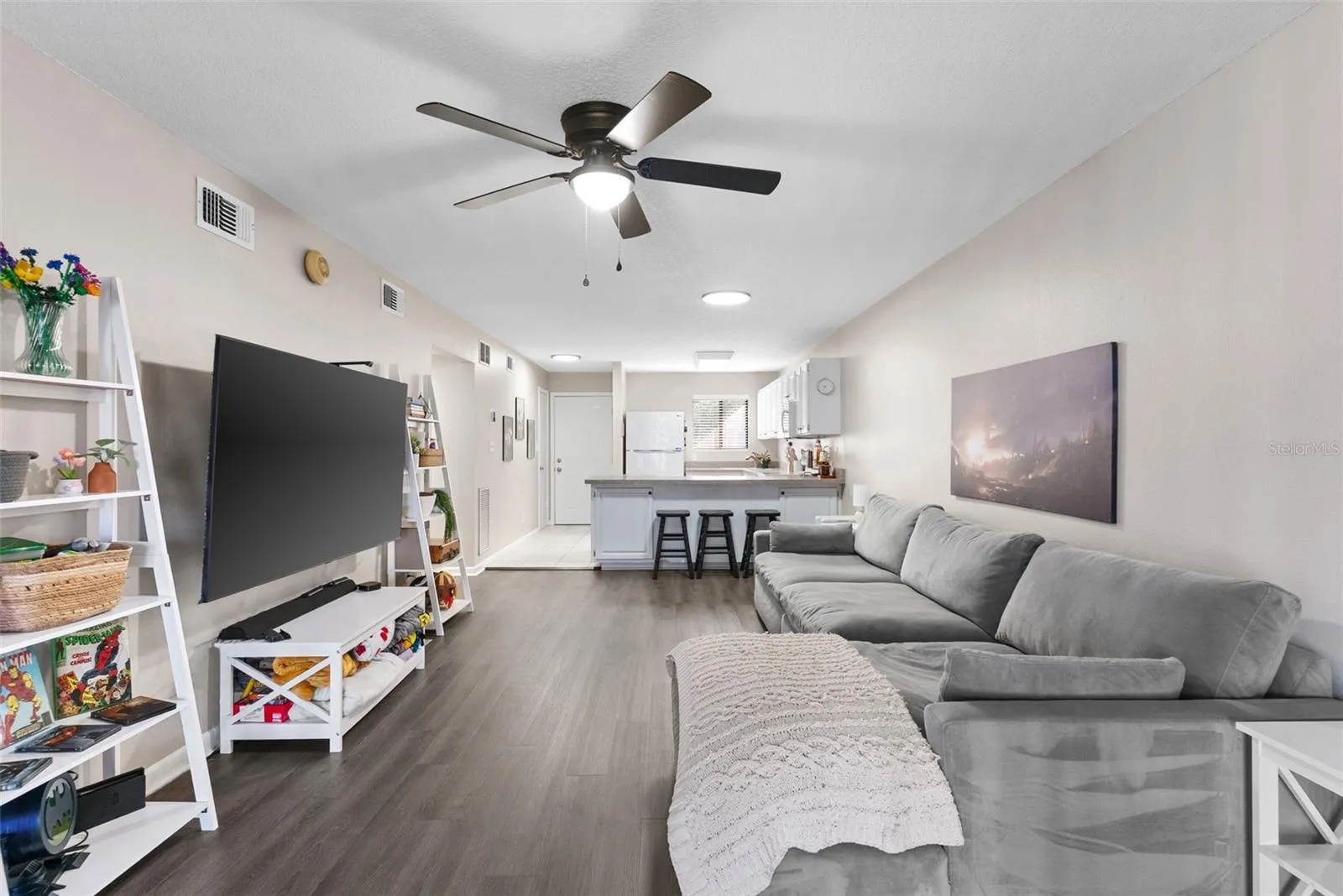This inviting 2 bedroom, 2 bath condo sits on the second floor of Harbor Pines, a well-kept community in West Bradenton. The layout makes good use of the space, with a comfortable living and dining area that leads out to a screened lanai overlooking the pond and open green space. It’s a quiet spot to sit, read, or enjoy your morning coffee. The lanai also has a storage closet for your extra items.