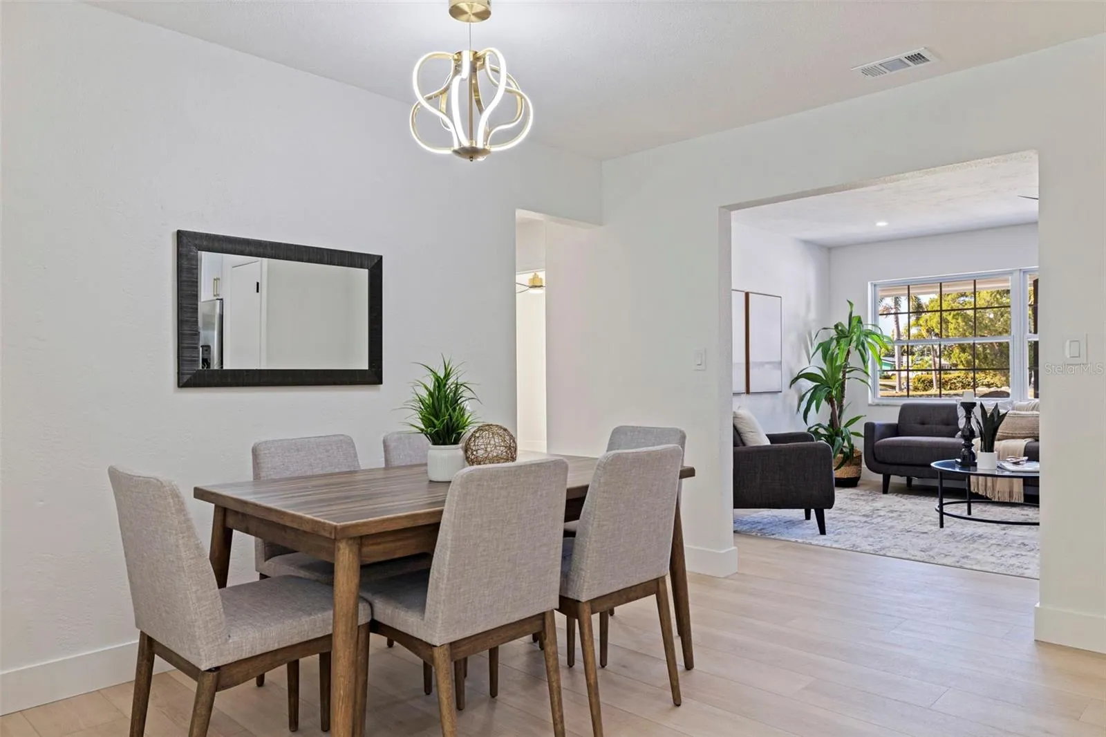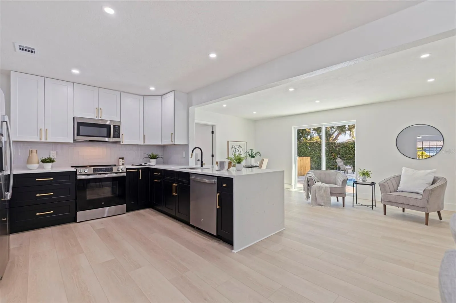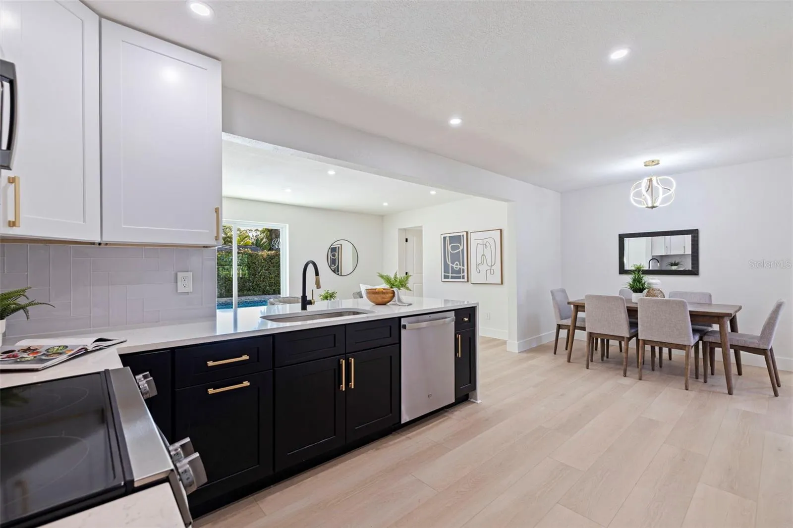 Your dream home just hit the market! This fully renovated 4-bedroom, 2-bathroom BLOCK home features an oversized 2-car garage, a beautiful pool, and sits on an oversized corner lot in the desirable Pinellas Point neighborhood—and it’s in a NON-flood zone. The home shines with fresh interior and exterior paint, luxury vinyl plank flooring, abundant natural light, and a spacious open layout. A thoughtful split floor plan provides privacy with three bedrooms and the beautiful updated guest bathroom on one side and a generous primary en-suite on the other, complemented by two inviting living rooms and a dining area perfect for entertaining or everyday living. The stunning kitchen boasts quartz countertops with bar seating, shaker cabinets, a stylish backsplash, and stainless steel appliances. Peace-of-mind updates include newer AC, plumbing, electrical, water heater, and windows. Step outside to your private oasis featuring a deep 9- ft pool, a beautiful paver patio, a new pool pump, and ample yard space including room on the right side of the home for a boat, RV, or additional storage. Located just 10 minutes from the beach with quick access to I-275, downtown St. Pete, and Bay Vista Park’s fishing pier and boat ramp, this immaculate home is perfect as a primary residence, vacation getaway, or investment opportunity. Don’t miss your chance to call this one home!
