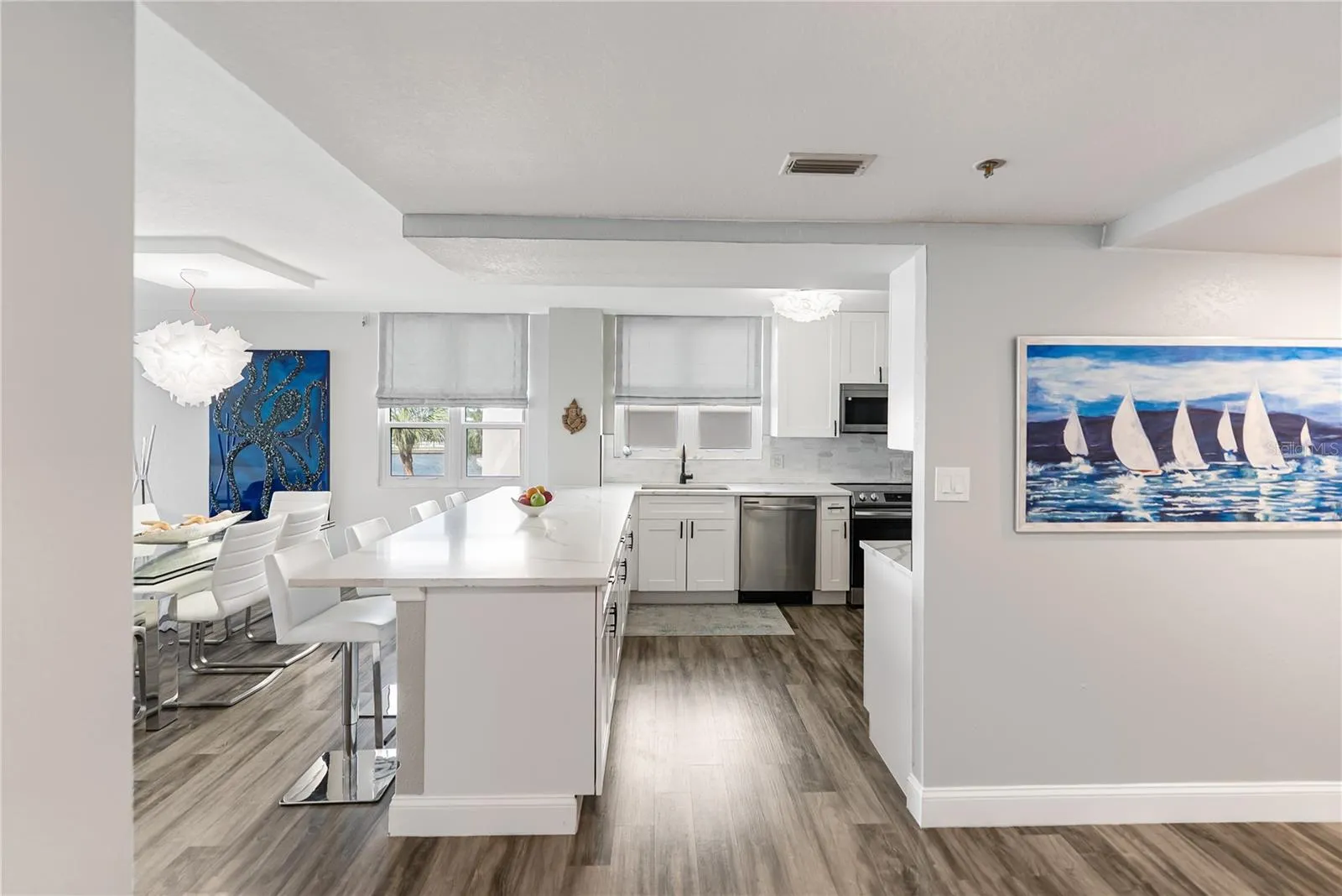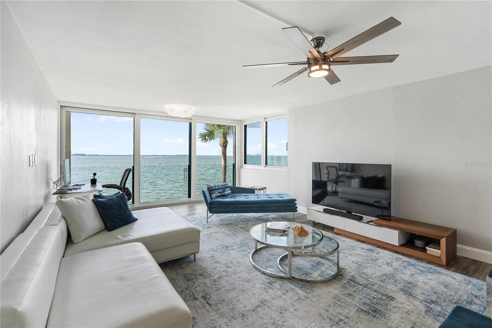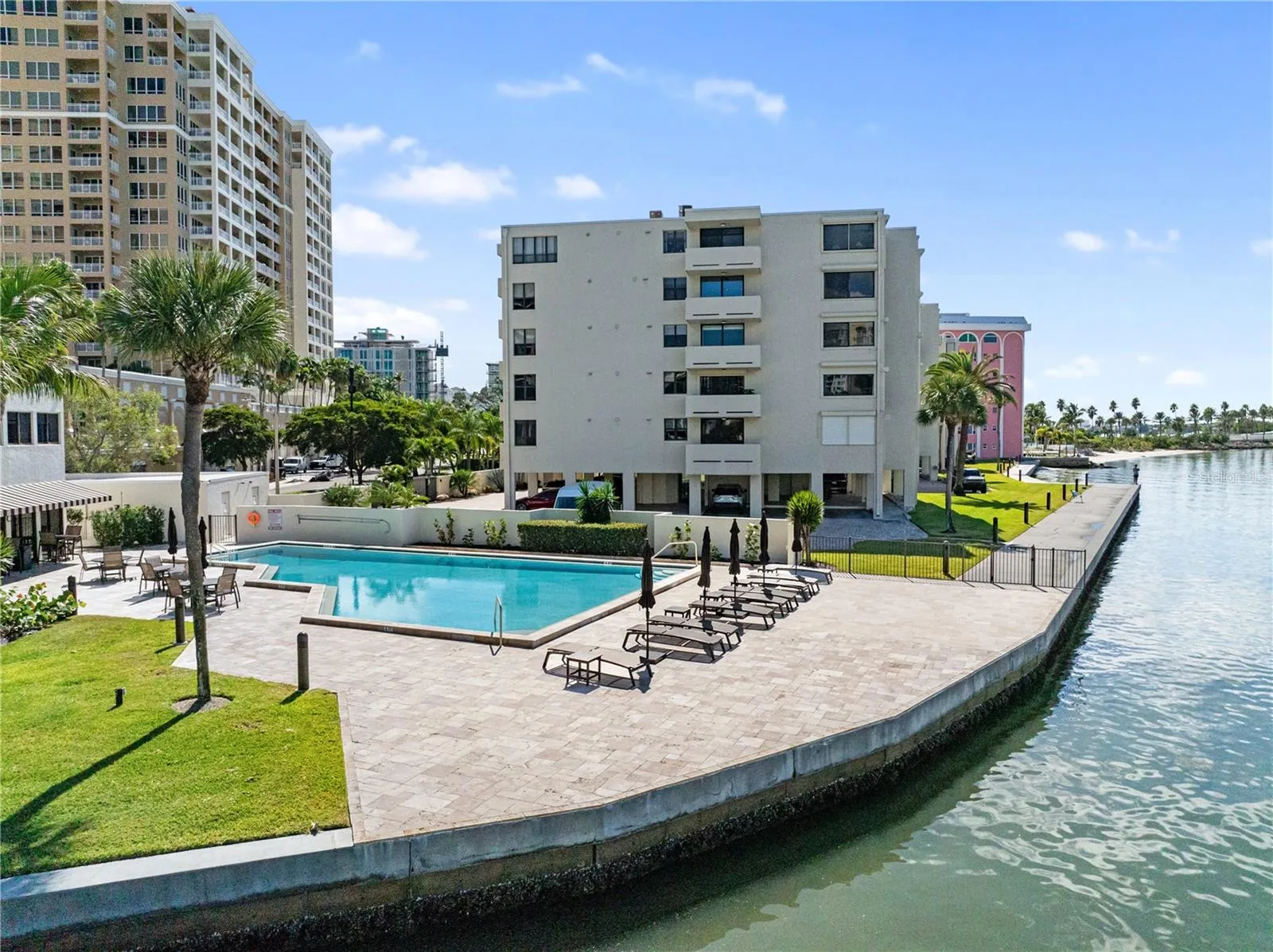 Live waterfront in one of Sarasota’s most desirable boutique communities. This beautifully updated 2 bedroom, 2 bathroom corner-unit residence offers panoramic Sarasota Bay views, a bright open layout, and the luxury of living steps from downtown, dining, culture, marinas, and the beach. Inside, expansive windows fill the home with natural light. The updated kitchen features stainless appliances, plenty of cabinetry, and an effortless flow into the living and dining areas, ideal for relaxed living or entertaining. An enclosed flex space extends the living room and makes the perfect reading nook, office, or lounge with the bay as your backdrop. The spacious primary suite includes his and hers walk-in closet, and an en-suite bath. A private guest bedroom and full bath create a comfortable split layout for visitors. In-unit laundry adds everyday convenience. Perfectly situated for those who want low-maintenance luxury living with quick access to St. Armands Circle, Marina Jack, theatres, restaurants, and world-renowned Gulf beaches. Waterfront living doesn’t get more convenient or more breathtaking.