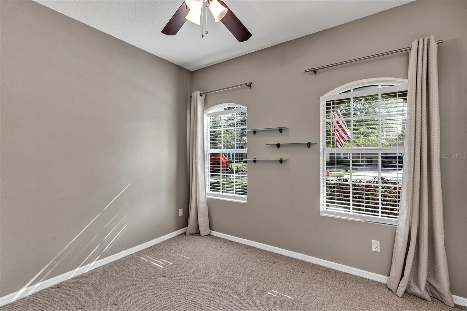 The primary suite offers a private backyard entrance and a rare extended flex space perfect for a nursery, gym, or cozy reading nook. Two additional bedrooms sit on the opposite side of the home with a cabana bath that opens to the patio.