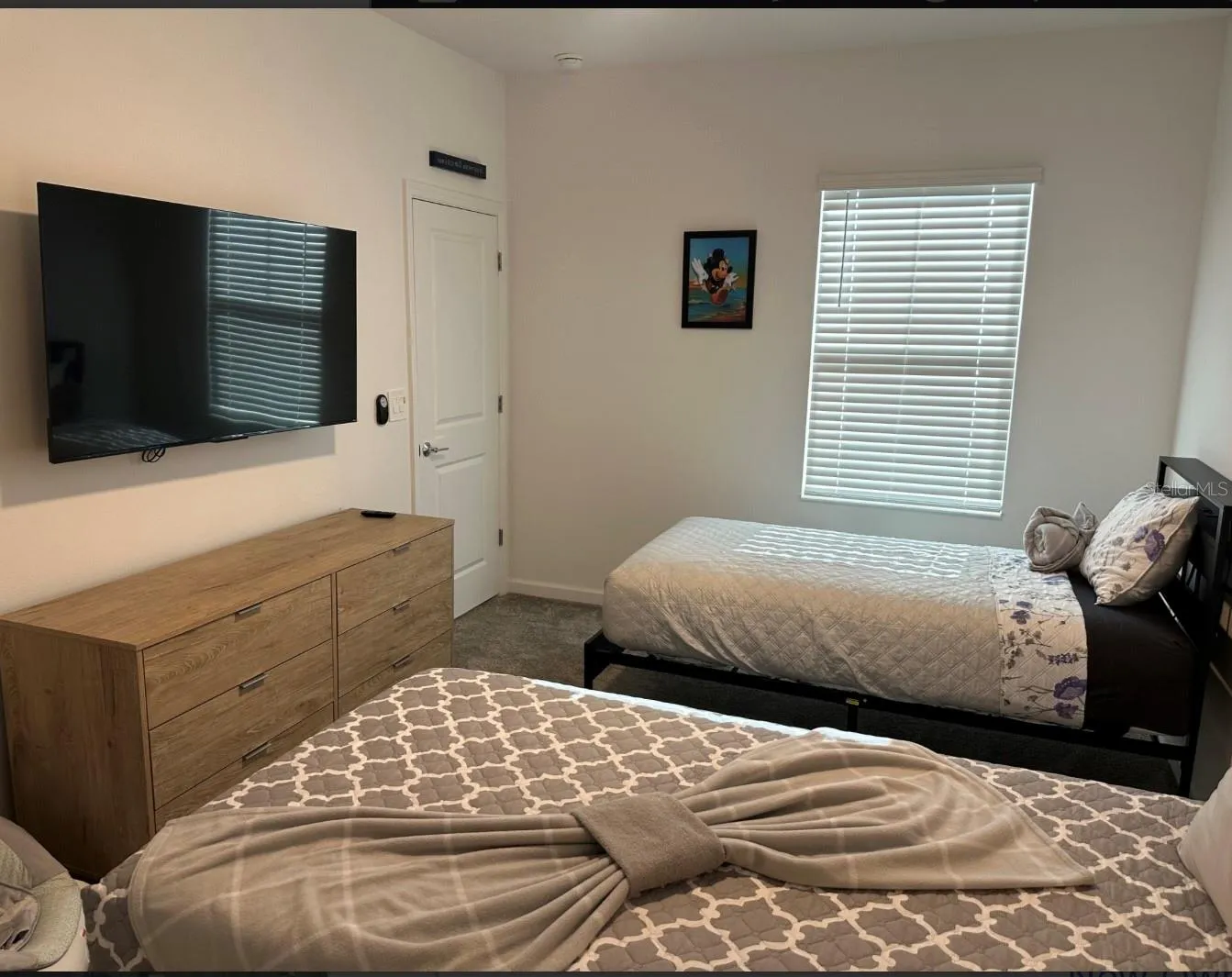 Amazing, fully furnished, 4 bedroom 2.5 bath, corner lot home in Pine Glen in Saint Cloud FL less than 20 miles from Lake Nona’s Medical City. Stunning modern kitchen with stainless steel appliances, quartz countertops, tall cupboards, and island with dual sink & extra seating. Enjoy the open floor plan with large dining room table, spacious living room, big screen tv, upgraded tile floor, ceiling fan and sliding glass door leading to the outdoor patio and back yard. Also downstairs is the half bathroom and direct access to the 3 car garage. Upstairs you will find another living area with a big screen tv and arcade game. All 4 oversized bedrooms are upstairs, include ceiling fans, and big screen TVs. Down the hallway you will find the shared bathroom and large laundry room. At the end of the hallway is the luxurious primary bedroom. This room has impressive size with a large sofa / sitting area and amazing ensuite bathroom including walk-in-shower, garden tub, separate toilet room, and massive closet. The home also has a water softener system. There is a Next Gen 5th bedroom downstairs with separate access that is not included in the rental. It is used sparingly throughout the year by the homeowner when on vacation. The homeowner will not have access to the rental home or garage. The community amenities include tennis, pickleball, basketball, playground and dog park. Conveniently located near shopping, dining, major highways, and the Orlando International Airport. Enjoy the luxury of Central Florida with is major attractions and reasonable drive to sunny beaches.