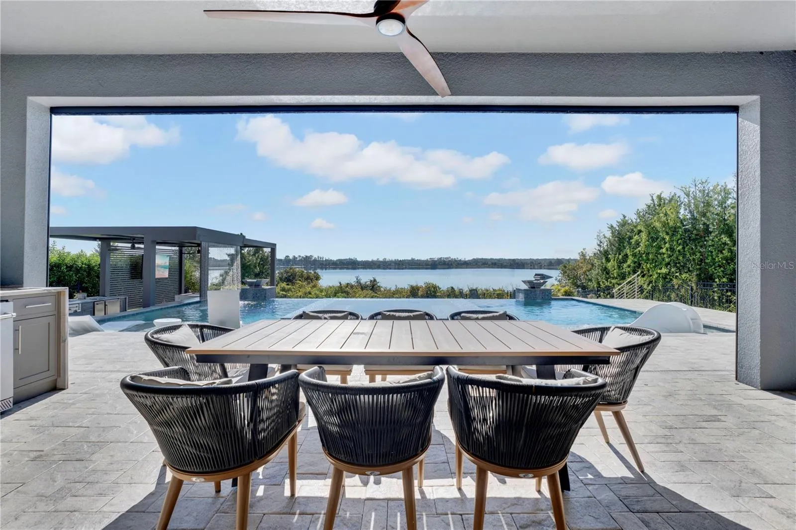Welcome to this magazine-featured lake-view home in Highlands at Summerlake Groves—celebrated for its incredible outdoor design, regarded among the very best in Winter Garden, where modern style, everyday comfort, and effortless entertaining come together. Step through the front door into a wide-open great room with elegant tile flooring and panoramic views stretching out to the lanai, infinity-edge pool, and tranquil lake beyond.