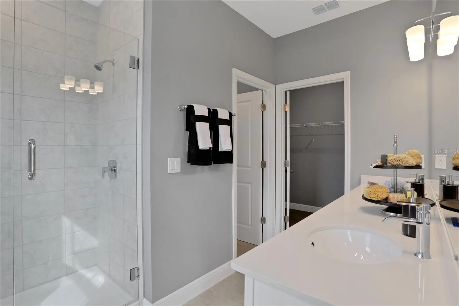 : Open Floorplan, Walk-In Closet(s), High Ceilings, Solid Surface Counters, Thermostat, Split Bedroom, PrimaryBedroom Upstairs