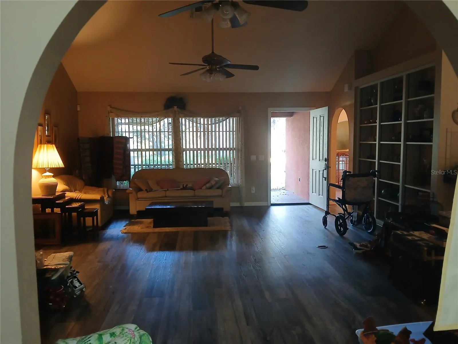 Beautiful setting in the woods… Contemporary home offers huge great room 17×21, plus long Florida room on the back. Spacious kitchen with dinnett at one end, big formal dining rm at other (separate). Inside laundry room. Master on one side, 2 bedrooms and bathroom on the other. Located off paved cty Rd 48 going West out of Bushnell. Winding driveway back to hse on 4 acres….