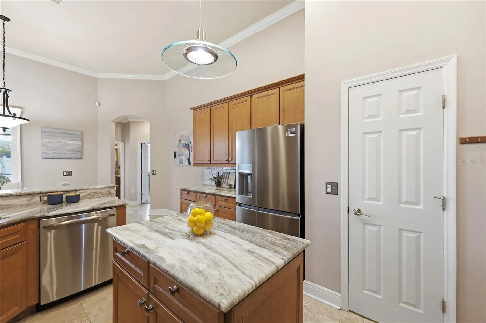 Step through the front door into the formal living and dining rooms that set the stage for holidays, celebrations, and special occasions. Feel the NATURAL LIGHT pour across the cherry LVP floors and elegant travertine tile, highlighted by HIGH CEILINGS that create an airy sense of space. PLANTATION SHUTTERS throughout add timeless elegance, privacy, and character.