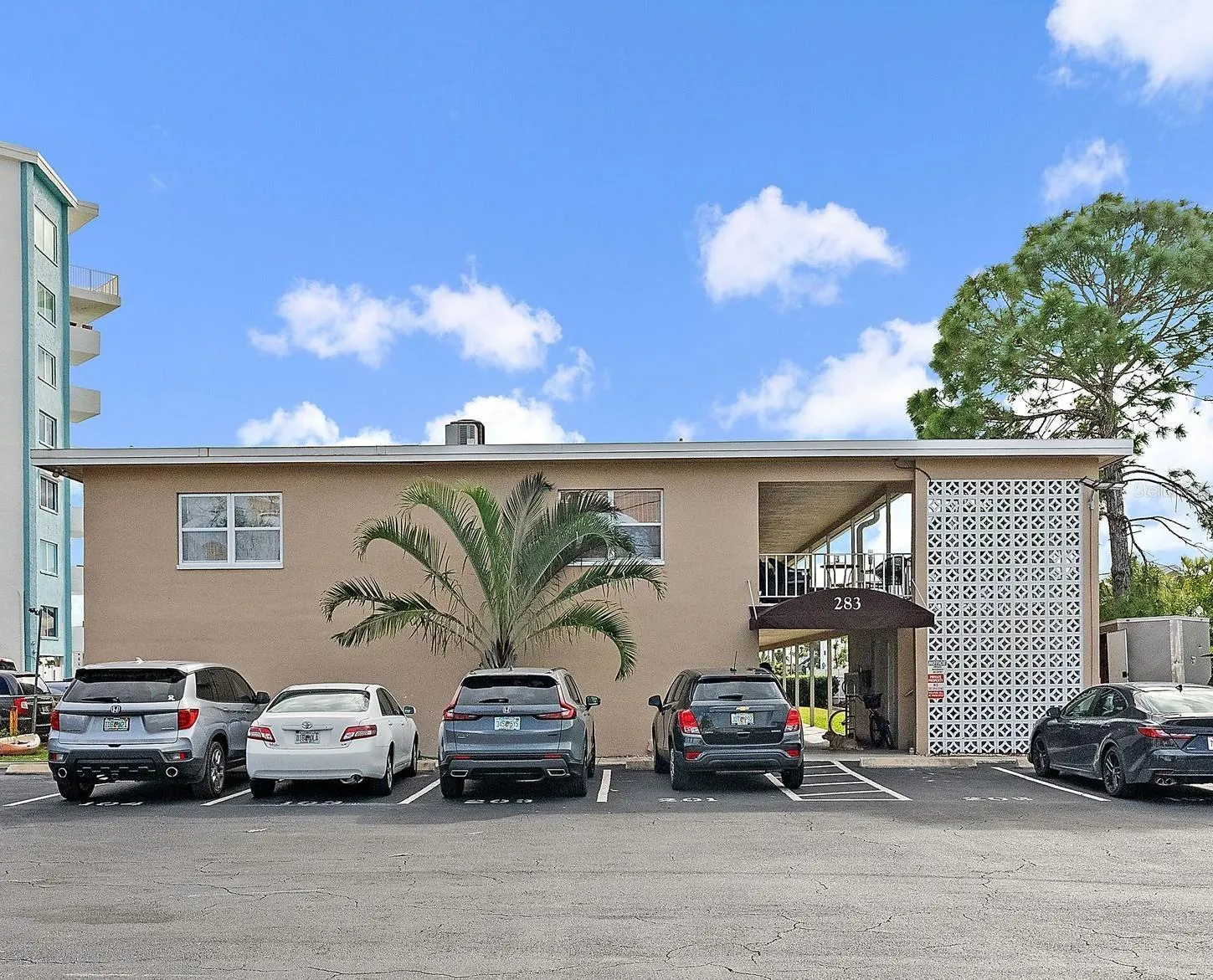 Unit 104 offers 2 bedrooms and 2 bathrooms, bright with natural light and modern finishes. Recent updates include NEW HVAC, NEW water heater, updated kitchen with soft-close drawers and quartz counters, NEW appliances, NEW interior paint, and NEW porcelain tile flooring throughout. Just bring your swimsuit — it’s move-in ready.