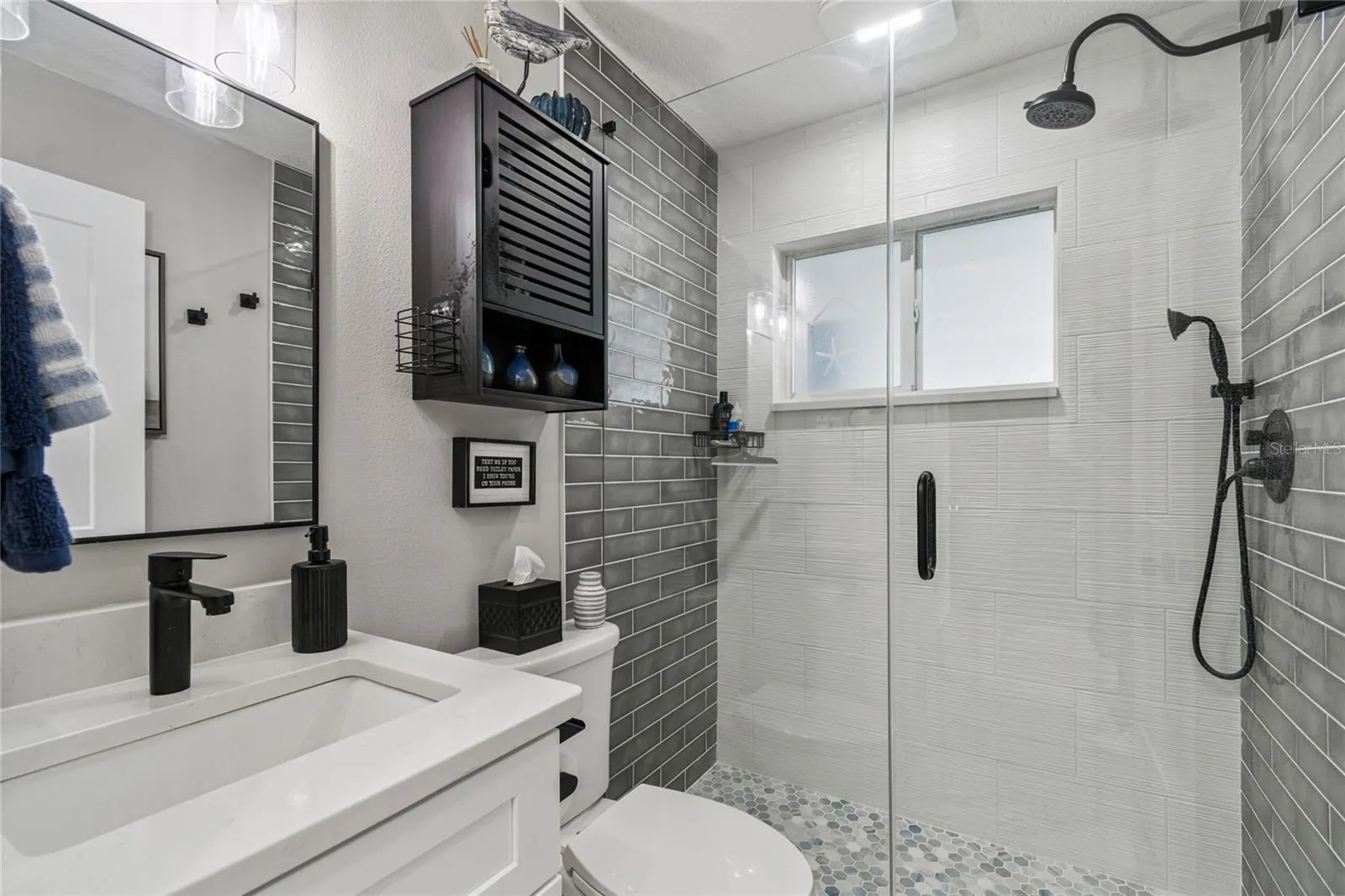 Stunning mid-century home in the highly sought-after Disston Heights neighborhood! This beautifully renovated 4-bedroom, 2-bath pool home sits on an impeccable corner lot and showcases the perfect blend of timeless charm and modern luxury. Completely updated in the last few years, this home is truly turnkey-move-in ready and needing nothing. Step inside to a bright, open layout featuring a stylish dining area and a show stopping kitchen with a massive island, high-end appliances, and abundant cabinetry with crown molding. The expansive family room offers the perfect gathering space with a custom built-in bar and two beverage refrigerators, complemented by custom blinds, grass cloth, and chic wall coverings throughout the home. Hurricane-impact windows and doors provide peace of mind and energy efficiency. Both bathrooms have been fully remodeled with walk-in showers and modern finishes. The backyard is where this home truly shines-a resort-style saltwater pool with attached hot tub, all enclosed by a full pool cage and surrounded by lush, professionally lit landscaping for complete privacy. the covered outdoor patio functions as an additional entertaining area, and the spacious yard also includes a custom-built shed and a dedicated gaming area ideal for conrhole or putting. The yard is fully fenced and serviced by irrigation. Additional features include: roof (2019), water heater (2019), AC (2024), Oversized 1.5 garage-room for a car plus a golf cart, custom paver driveway with a gated RV/boat parking complete with electric, fully updated landscaping with extensive outdoor lighting, non-flood zone-high and dry. All of this in an unbeatable location-just a short drive to downtown St. Pete, beautiful local parks, the Gulf Coast’s world-famous beaches, top-rated restaurants, shopping, entertainment, and only 30 minutes to Tampa International Airport. A truly turnkey, meticulously updated home in one of St. Pete’s most desirable neighborhoods. This one is a must see!
