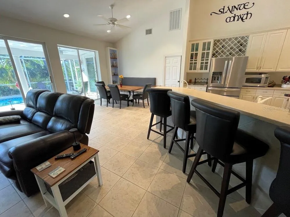 WELCOME TO PINE ISLAND! THIS BEAUTIFULLY MAINTAINED , SINGLE FLOOR HOME BLENDS EFFORTLESS FLORIDA LIVING WITH THOUGHTFUL UPGRADES, SPACIOUS COMFORT, AND A SERENE NATURAL SETTING! WITH ITS OPEN FLOOR PLAN, HIGH VAULTED CEILINGS, AND A SOLAR HEATED POOL AND HEATED SPA OVERLOOKING A TRANQUIL WILDLIFE POND, THIS IS THE KIND OF HOME THAT MAKES EVERY DAY FEEL LIKE A VACATION! STEP INTO A SWEEPING LIVING ROOM/ DINING COMBO THAT IS OPEN TO A CHEF”S DREAM KITCHEN! A CUSTOM FLOOR TO CEILING LIBRARY/W ROLLING OAK LIBRARY LADDER, OPEN AND CLOSED STORAGE AND SPACE FOR A LARGE TV ANCHORS THE LIVING ROOM! THE DINING AREA FEATURES A LONG UPHOLSTERED BENCH W/ HIDDEN STORAGE THAT WILL ACCOMMODATE A LARGE DINING TABLE! THE HUGE DREAM KITCHEN HAS A LARGE BAR HEIGHT COUNTER /W SEATING FOR 4! STAINLESS STEEL APPLIANCES , LARGE CORIAN COUNTERS , COOKING TOP ISLAND AND EXHAUST HOOD, AND A SEPARATE WORKSPACE FOR LAPTOP WORK ETC! THE OVERSIZED PRIVATE OWNERS SUITE OPENS TO LANAI AND POOL/SPA AND ENSUITE HAS LARGE WET ROOM W/ JETTED SOAKING TUB, LARGE OPEN SHOWER, 2 WALK-IN CLOSETS , DUAL SINKS W/ CORIAN COUNTERS AND LOTS OF DRAWERS, SHELVING AND STORAGE BASKETS! 2 BEDROOM ALSO OPENS TO POOL/SPA AND HAS BATHROOM W/ WALK IN SHOWER AND WALK IN CLOSET! 3RD BEDROOM CAN FUNCTION AS HOME OFFICE AND ALSO HAS WALK-IN CLOSET! THERE IS ALSO A HALF BATH IN HALLWAY THAT IS CONVEINENT FOR GUESTS! THE OUTSIDE OF HOME IS YOUR PRIVATE FLORIDA OASIS! THE FULLY SCREENED LANAI STRETCHES ACROSS THE REAR OF HOME AND HAS SOLAR HEATED POOL AND HEATED SPA THAT OVERLOOKS SEAWALL AND POND BRIMMING W/ FLORIDA WILDLIFE, TURTLES, HERONS, EGRETS , OTTERS AND BALD EAGLES! ENJOY THE EVENINGS VIEWING THE LIGHTED FOUNTAIN IN POND! THERE IS A INSIDE LAUNDRY THAT LEADS TO 2 CAR GARAGE W/ ROOM FOR GOLF CART! THIS IS A GOLF CART FRIENDLY COMMUNITY! HOME ALSO HAS A CULLIGAN WATER SOFTENER AND R-O SYSTEM AND A WHOLE HOUSE VACUUM SYSTEM! SET ON THE SIXTH FAIRWAY OF ALDEN PINES GOLF COURSE, THE HOME IS SURROUNDED BY NATURAL BEAUTY! THE COURSE IS CURRENTLY CLOSED AND IS IN NEGOTIATIONS WITH PURCHASER! PINE ISLAND IS WORLD RENOWNED FOR ITS FISHING, WILDLIFE, QUIET ATMOSPHERE AND ACCESS TO MATLACHA PASS AND PINE ISLAND SOUND! MAKE THIS YOUR WINTER OR FOREVER HOME!!! OFFERED AT $560,000