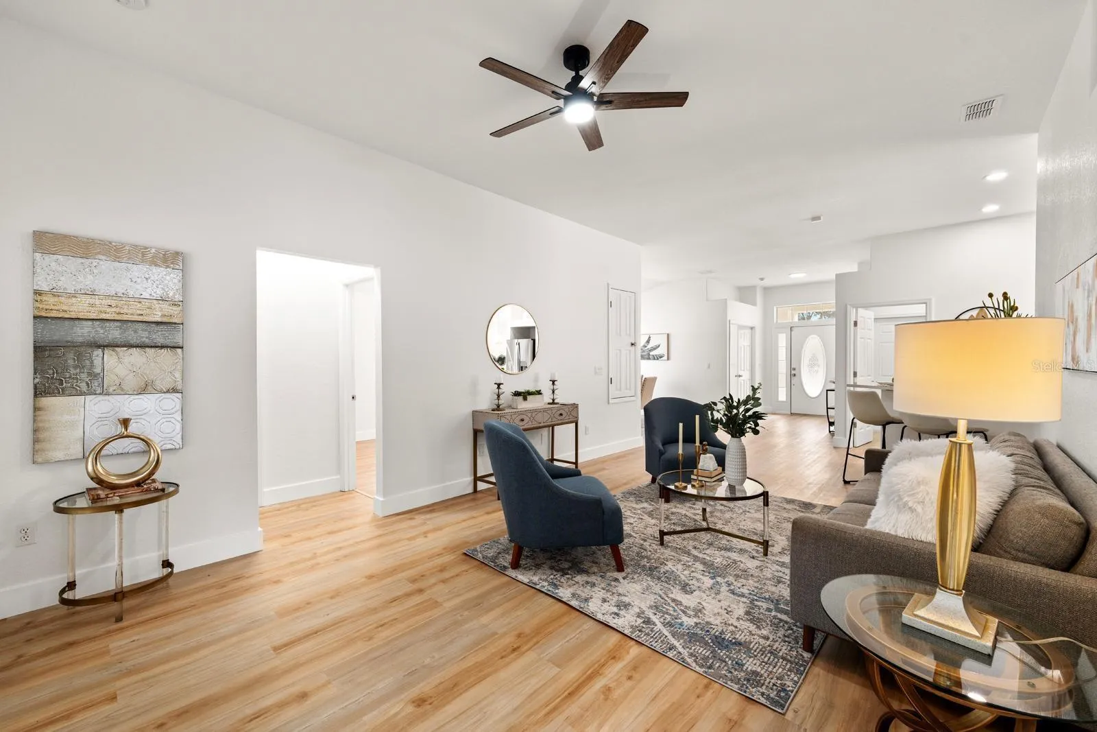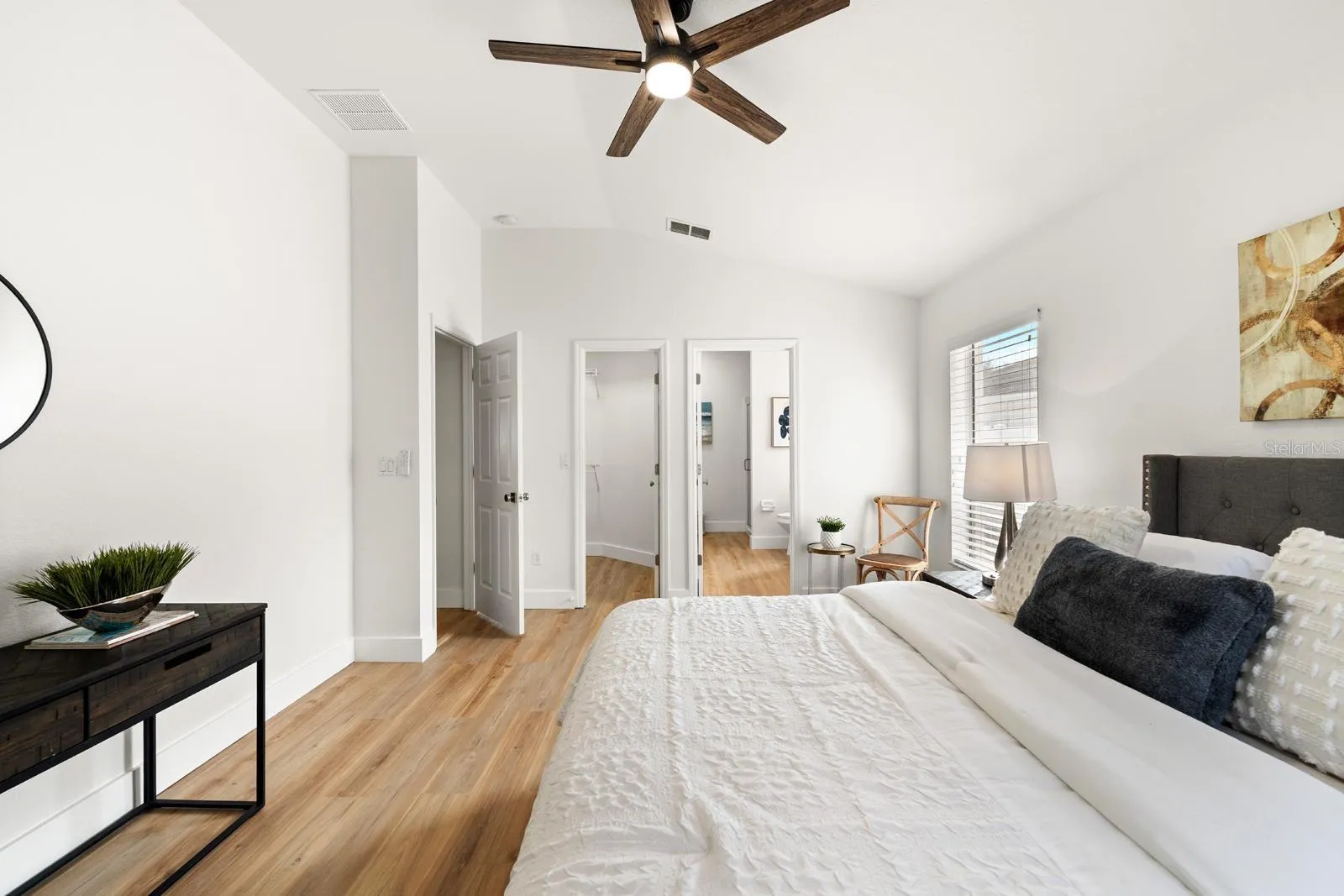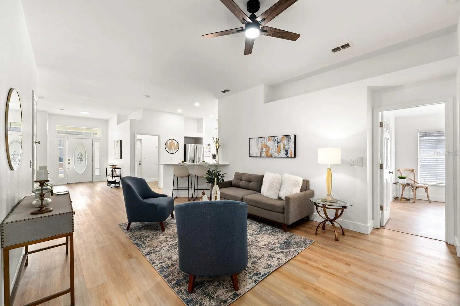 Fully remodeled and beautifully updated, this spacious 4-bedroom home is located in the gated community of Moss Landing and sits on an oversized, fenced lot with a peaceful tree-lined backdrop. Step inside to a bright, open layout with vaulted ceilings, new oak luxury vinyl plank flooring, fresh paint, and modern lighting throughout. The reimagined kitchen features quartz-style counters, brand new stainless steel appliances, a breakfast bar, and a cozy breakfast nook tucked comfortably off the main living area. The primary suite offers great natural light, a walk-in closet, a soaking tub, a separate shower, and a renovated double-vanity bath, while three additional bedrooms provide flexibility for guests, a home office, or a playroom. The deep backyard with mature shade trees offers an expansive outdoor space with room to design your ideal retreat, whether it’s a pool, outdoor kitchen, or entertaining area. On top of the cosmetic updates, the home features a new roof (2025), an HVAC system (2022), a new electrical panel (2023), and an irrigation system, providing peace of mind and added convenience. Additional highlights include a water softener system. This home offers privacy while still being close to major roadways, shopping, and dining. Move-in ready!