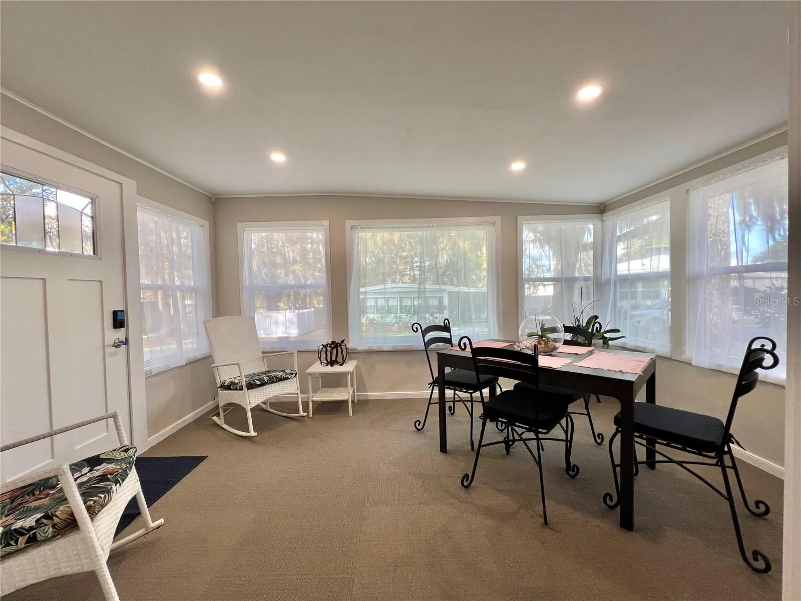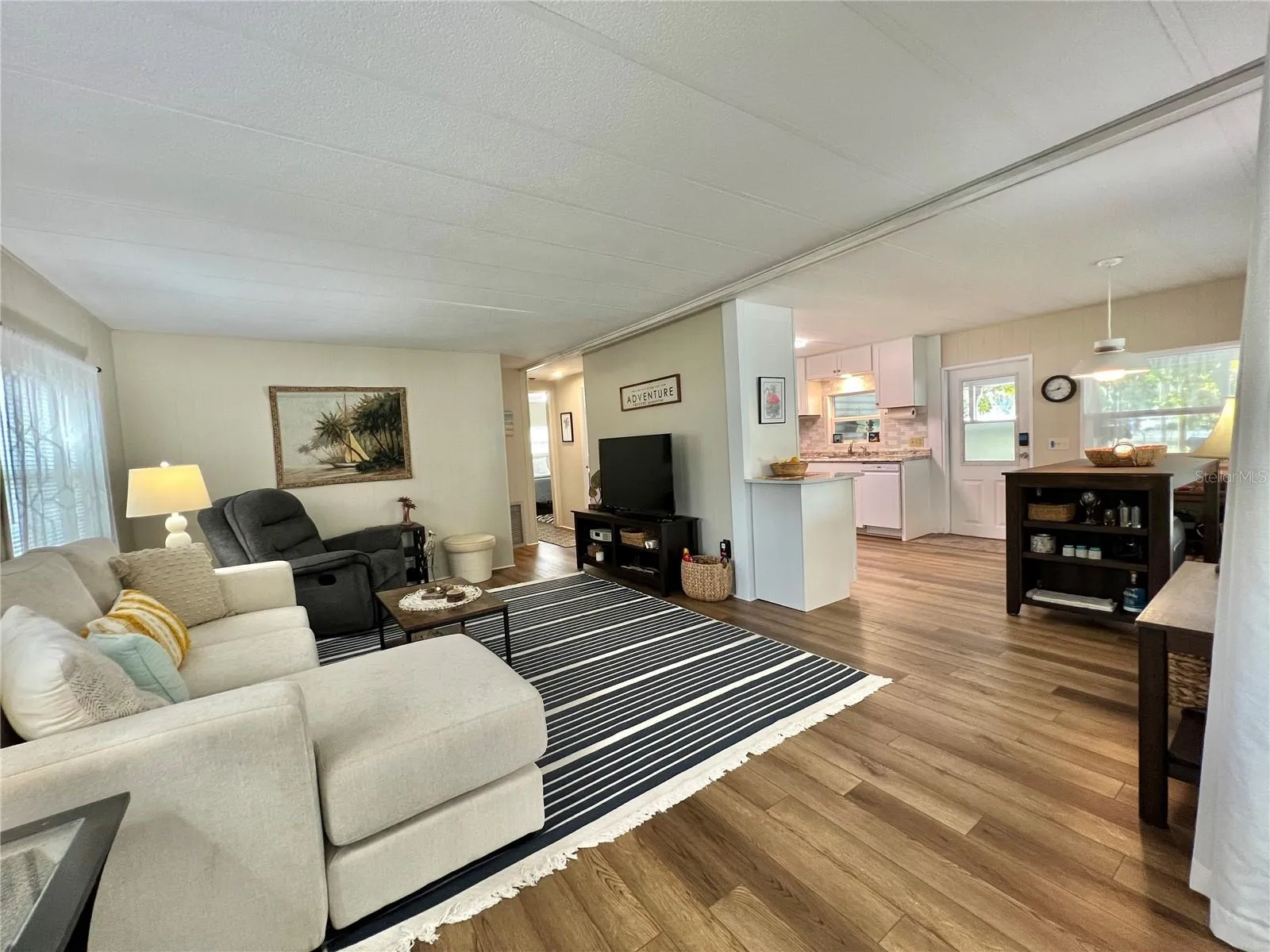 A Fresh Chapter on Royal Palm Drive — Fully Furnished, Updated 2-Bed/2-Bath Hilltop Home Backing to Woods, Golf Cart Included. Perched on a gentle hill along the quiet, sun-warmed curve of Royal Palm Drive, this beautifully renewed and fully furnished 2-bedroom, 2-bath home offers a rare blend of privacy, natural beauty, and effortless move-in ease. With no neighbors behind the property and a park-like setting off the side patio, you’ll enjoy a peaceful, scenic backdrop rarely found in the community. From the moment you arrive, the thoughtful upgrades are unmistakable. Brand-new vinyl siding glows in the Florida daylight, while the freshly coated roof, protected by a three-year warranty adds lasting confidence. Every exterior window and door has been updated with energy-efficient replacements, and the newly installed paver driveway and patio create an inviting entrance perfect for outdoor entertainment and relaxation. Inside, the home unfolds with comfort and character. New subfloors paired with luxury LVP floating floors lead you through beautifully furnished living spaces, each room curated for ease and style. The Florida room refreshed with soft new carpeting offers a serene place to unwind while overlooking the quiet neighborhood close to the river. Both bathrooms have been tastefully updated with new vanities, and the primary ensuite features a fully tiled shower that brings a spa-like touch to daily routines. The kitchen includes a new dishwasher and garbage disposal and is supported by an on-demand water heater that ensures endless hot water. An expanded utility room offers extra storage, while fresh interior paint brightens every space. Behind the scenes, the upgrades continue: a new HVAC system ensures year-round comfort, a high-definition water treatment system provides crisp, clean water, and improved downspouts keep the property draining smoothly. A new grill and security system add practical convenience. While the backyard feels like a secluded retreat tucked against the woods and the side patio overlooks lush, open green space, the community’s pool, clubhouse, and full suite of amenities remain just a short stroll away. Move-in ready, fully furnished, and thoughtfully elevated, this home on Royal Palm Drive offers a peaceful, private sanctuary where every detail has already been prepared for your next chapter…………..Hawthorne at Leesburg is an active, resident owned, 55+ cooperative, waterfront, gated community, with beautifully landscaped grounds, lakes with illuminated fountains and a relaxing and comfortable gazebo. The affordable monthly maintenance fee of $346 includes water, sewer, lawn mowing, private emergency services and storage space for recreational vehicles, boats, trailers and much more! The beautiful clubhouse is complete with a full-time program coordinator, more than 100 different activities and seating for 550. It has a hospitality lounge, card rooms, craft rooms, billiard room, fitness center, library, fine arts room and many more. There is excellent fishing, outdoor geo-thermally heated pool and two enclosed therapeutic pools. Hawthorne boasts a private marina monitored by an electronic security system with over 120 boat slips and access to the Harris Chain of Lakes and beyond.