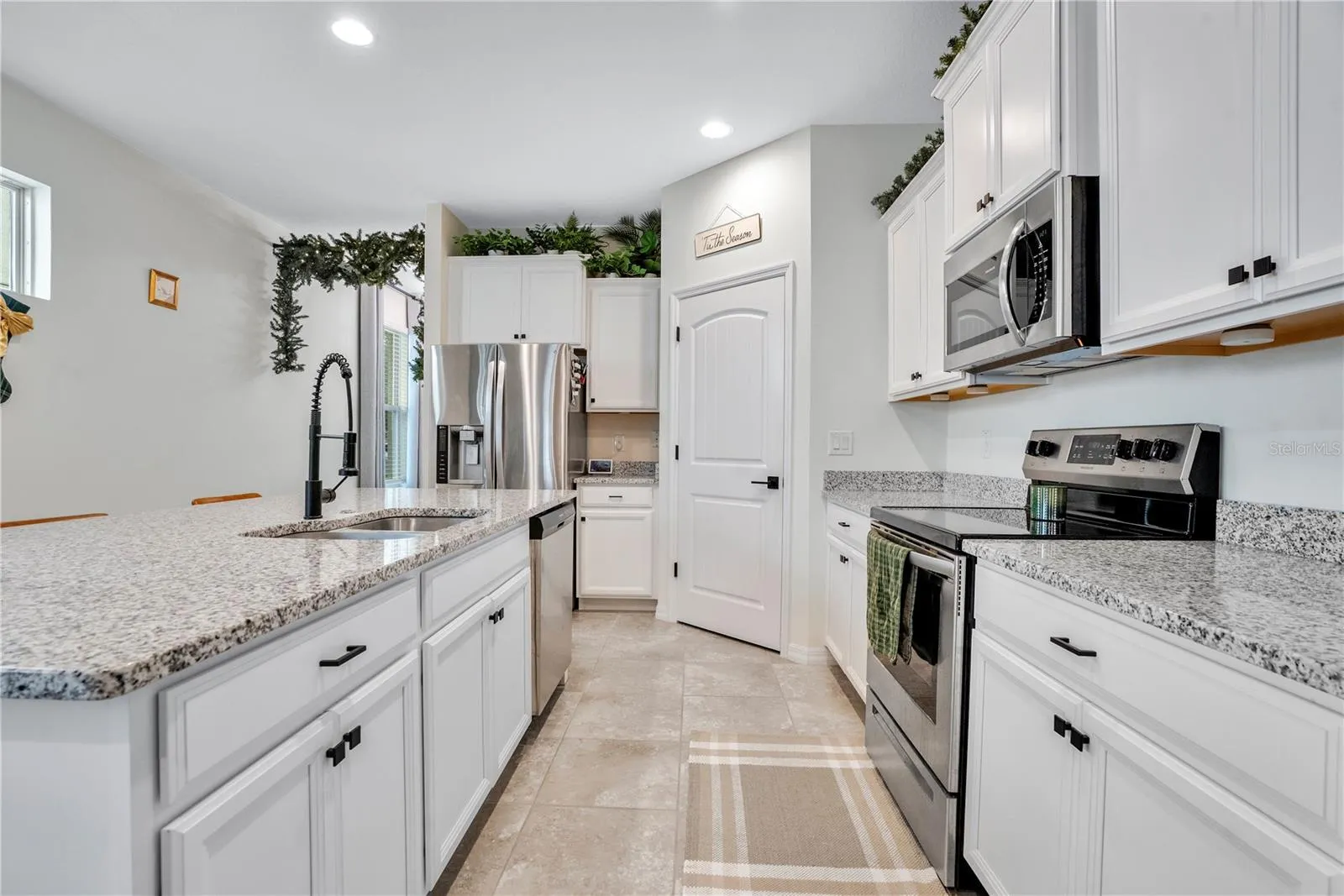 Welcome to your new home in the highly sought-after Waterleigh community of Horizon West! This charming single-story 3-bedroom, 2-bath home feels bright and inviting from the moment you walk in. The primary bedroom is a true retreat, with lots of natural light, direct access to the primary bath featuring dual sinks, a spacious shower, and a custom-designed walk-in closet. The heart of the home is the open-concept kitchen and family room. The kitchen shines with an oversized granite island, stainless steel appliances, and a large custom built walk-in pantry, perfect for cooking, entertaining, or just hanging out with family. Step out to your private paved and screened lanai, a great spot to relax or host friends. Other thoughtful touches include a fenced backyard, gutters, and beautiful tile throughout the entry, kitchen, and living areas. Life in Waterleigh is a dream, with resort-style amenities including two clubhouses, sparkling pools, mini-golf, sports fields, fitness centers, tennis courts, walking trails, lakes, ponds, and a community garden. Zoned for top-rated schools and just minutes from Horizon West, shopping, dining, Disney, aPublix located within five minutes, and major highways, this home combines comfort, style, and lifestyle in one of Winter Garden’s most popular communities. Come see it for yourself, you’ll love calling this place home!