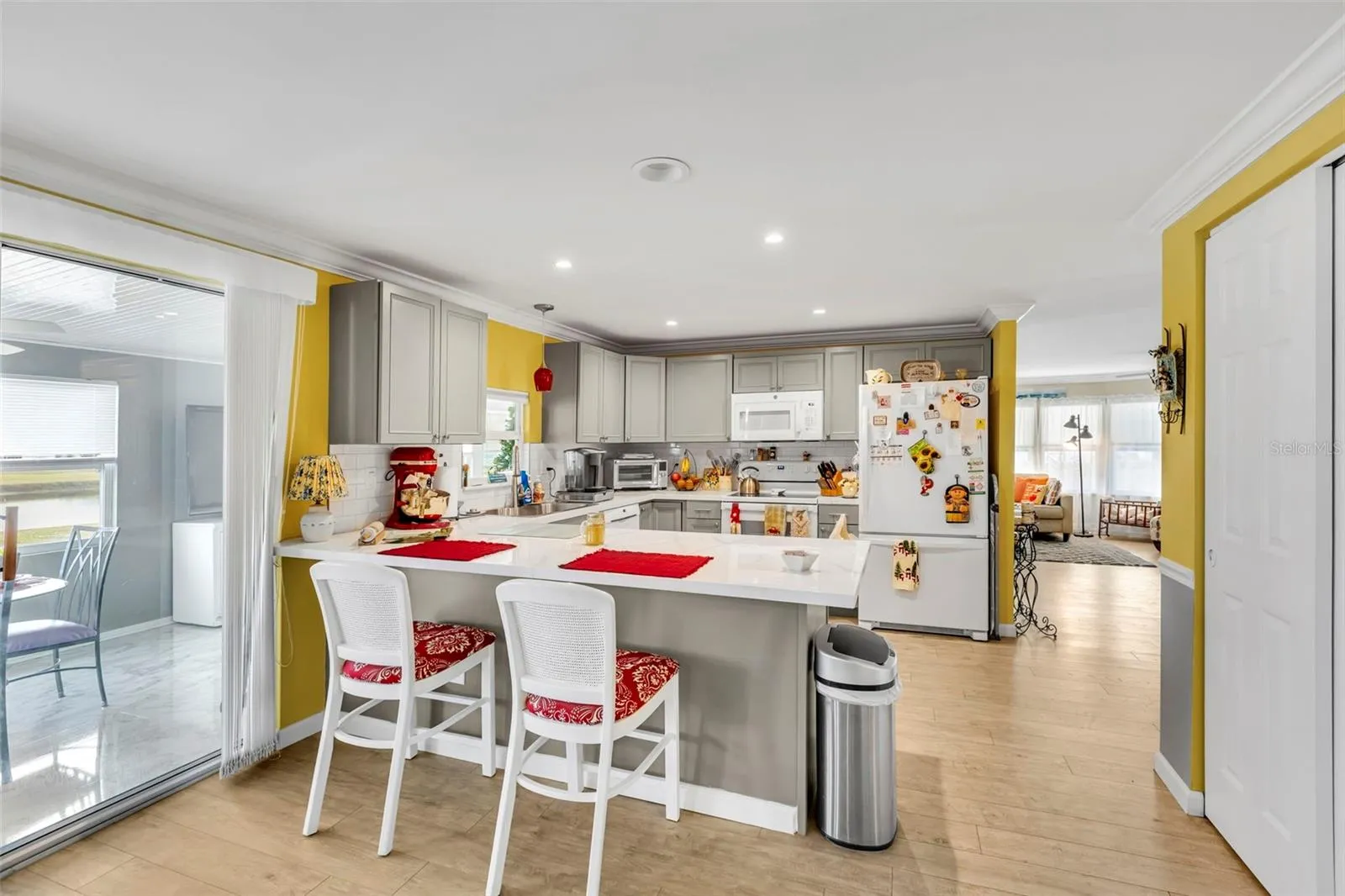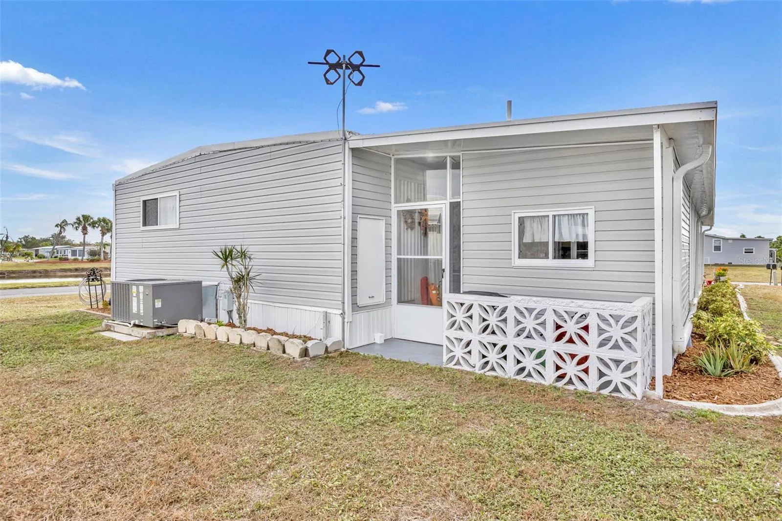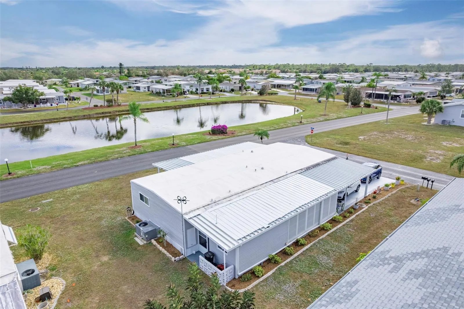 This beautifully renovated two-bedroom, two-bathroom home offers stunning lake views. Enjoy your morning coffee or an evening cocktail in the glass-enclosed Florida room, where you can savor the breathtaking sunrises and sunsets over the tranquil lake. The entryway features a double pantry and a double utility closet for extra storage. The bright and airy kitchen is equipped with newer appliances, a new countertop, a stylish backsplash, and gray cabinetry that includes two Lazy Susans for added convenience. There’s also an additional pantry for more storage. Adjacent to the kitchen is a dining room that has a sliding door leading to the glass-enclosed Florida room, which overlooks the lake. The Florida room includes a door that opens to a rear covered patio, as well as a front door that provides access to a walkway and carport. The spacious primary bedroom offers a built-in linen closet, a dressing area, and a laundry room complete with a washer and dryer. It also features a double closet and a new vanity. The primary bathroom is equipped with a large, tiled shower and elegant tile floors. The guest bedroom is generously sized, allowing for a king-sized bed, and it includes a double closet with direct access to the guest bathroom, which features a tub/shower combination and a new vanity. The carport connects to an enclosed lanai with a lovely tile floor, as well as an extra-large utility room with a door leading to the rear yard. This home boasts numerous upgrades, including a new carport, a new aluminum-pan roof over the carport, shed, and lanai, a new TPO roof on the home, newer tilt-in windows throughout, a new vapor barrier, newer siding, trim, skirting, a new A/C unit (installed in 2021), new raised-panel doors, and much more such as a new aluminum-pan roof over carport, shed, Florida room, new TPO roof on the home, newer tilt-in windows throughout, new vapor barrier, newer siding, trim, skirting, new A/C 2021, new raised-panel doors, and so much more. Welcome to La Casa, an enchanting community where 974 exquisite homes are beautifully set among native trees, surrounded by spacious common areas and eight serene lakes. Our generous 60 by 80-foot lots can create your ideal space. Perfectly located between Sarasota and Fort Myers, La Casa is a boater’s paradise with direct access to the stunning Gulf of Mexico. Enjoy easy access to shopping, sightseeing, golfing, and fishing, all while immersing yourself in the rich culture of Southwest Florida. Experience the warmth of Southwest Florida’s winters in a relaxed environment, far from the east coast hustle. Our lush, mature landscaping reflects the dedicated care of residents and management. La Casa features some of the finest pools in the area, including our magnificent 40 by 60-foot swimming pool, maintained at a delightful 87 degrees, and a cozy 20 by 40-foot pool nestled between the clubhouse and Activity Building, both with inviting hot tubs. Stay connected with our complimentary Wi-Fi at the Clubhouse, Activity Building, and Recreation Hall while you soak up the sun. La Casa is a family-friendly haven where you can enjoy tranquility while remaining close to vibrant attractions. Come visit our charming oasis and discover why La Casa is the ultimate destination for snowbirds and year-round residents!