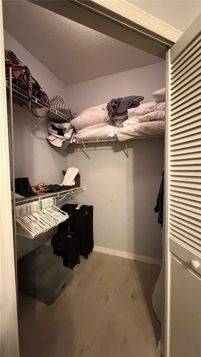 primary suite boasts a spacious bedroom, and a large walk-in closet for added privacy and comfort. The condo also