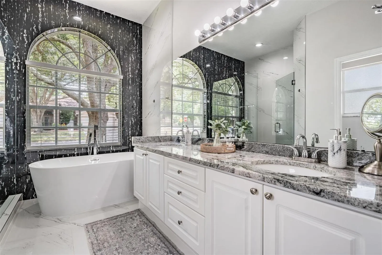 Welcome to New Tampa! This picturesque home is located near food and restaurants, in the beautiful Meadow Point Community. Lifetime Fitness & Whole Foods coming soon, within a few miles from this home. Featuring three bedrooms + a home office, two bathrooms with a two car garage. Upgraded with porcelain tile, light grey paint, renovated modern bathrooms with walk-in showers and the primary bath with a garden bathtub, a large lanai with screen, and a large fenced yard. The kitchen has white cabinets with stone countertops, upgraded appliances a designated cafe area and a separate dining area, both overlooking the living room. Move in ready! Also located just 1 mile from Advent Health Hospital, 5 miles from I-75, entertainment, and more, 25 minutes from Downtown Tampa, 35 minutes from the Tampa International Airport, and an hour and a half from Orlando, Walt Disney World/Universal Studios parks and various fun activities. Schedule a tour today!