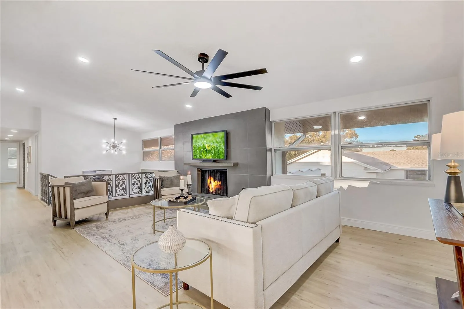 This stunning block-construction home has been meticulously upgraded with a brand-new roof, updated electrical system, energy-efficient windows, and a striking paver driveway with custom garage doors. Inside, luxury vinyl plank flooring, recessed lighting, and premium finishes create a sophisticated, light-filled interior.