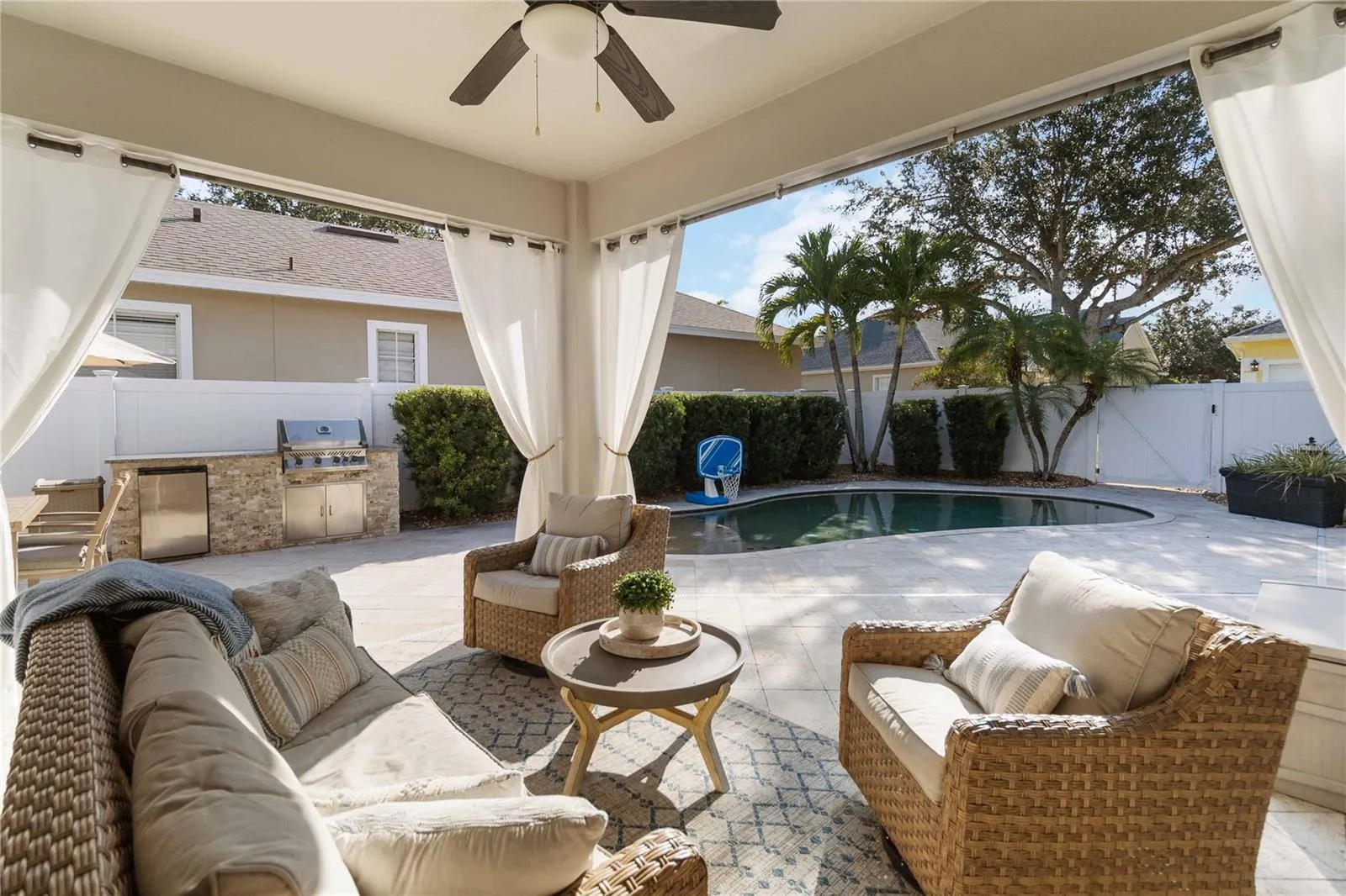 The home itself sits on a large, tree-shaded lot, with a fenced-in heated pool. Its well-appointed 3,048 square feet includes a study office, bonus room, generous bedrooms, a fist floor master suite and a large entertainer’s kitchen. The home is as comfortable as it is elegant, with spacious, light-filled rooms, superior craftsman finishings, rich architectural features, tray ceilings, and supple wood floors. The kitchen has been remodeled with central prep island, butler’s pantry. Custom private pool deck with oversized covered lanai and its heated pool with unique shallow wading area. This beautiful home was just painted on the exterior and has surround sound thru out the house. Northlake Park is an exclusive community, spanning 500 acres and home to an award-winning school and YMCA (with membership included in your HOA), an Olympic size pool, athletic courts, and a charming dog park. You’ll be close to the crystal waters of Lake Nona, pristine parks,