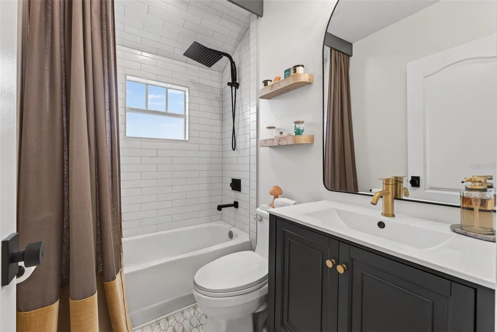 This home received a TOP-TO-BOTTOM REFRESH IN 2025, including: freshly painted Interior and Exterior, LVP Flooring throughout, updated interior and exterior lighting, ceiling fans and hardware, a completely remodeled bathroom, smart dimmable switches, Ring doorbell and home alarm system, smart thermostat, refreshed fireplace and hearth, new kitchen cabinet doors and appliances, range hood, washer and dryer, artificial turf in the front and fresh sod in the back, exterior uplighting, a smart-controlled sprinkler system, gutters, white PVC fencing, and a wood gate with a remote electric opener.
