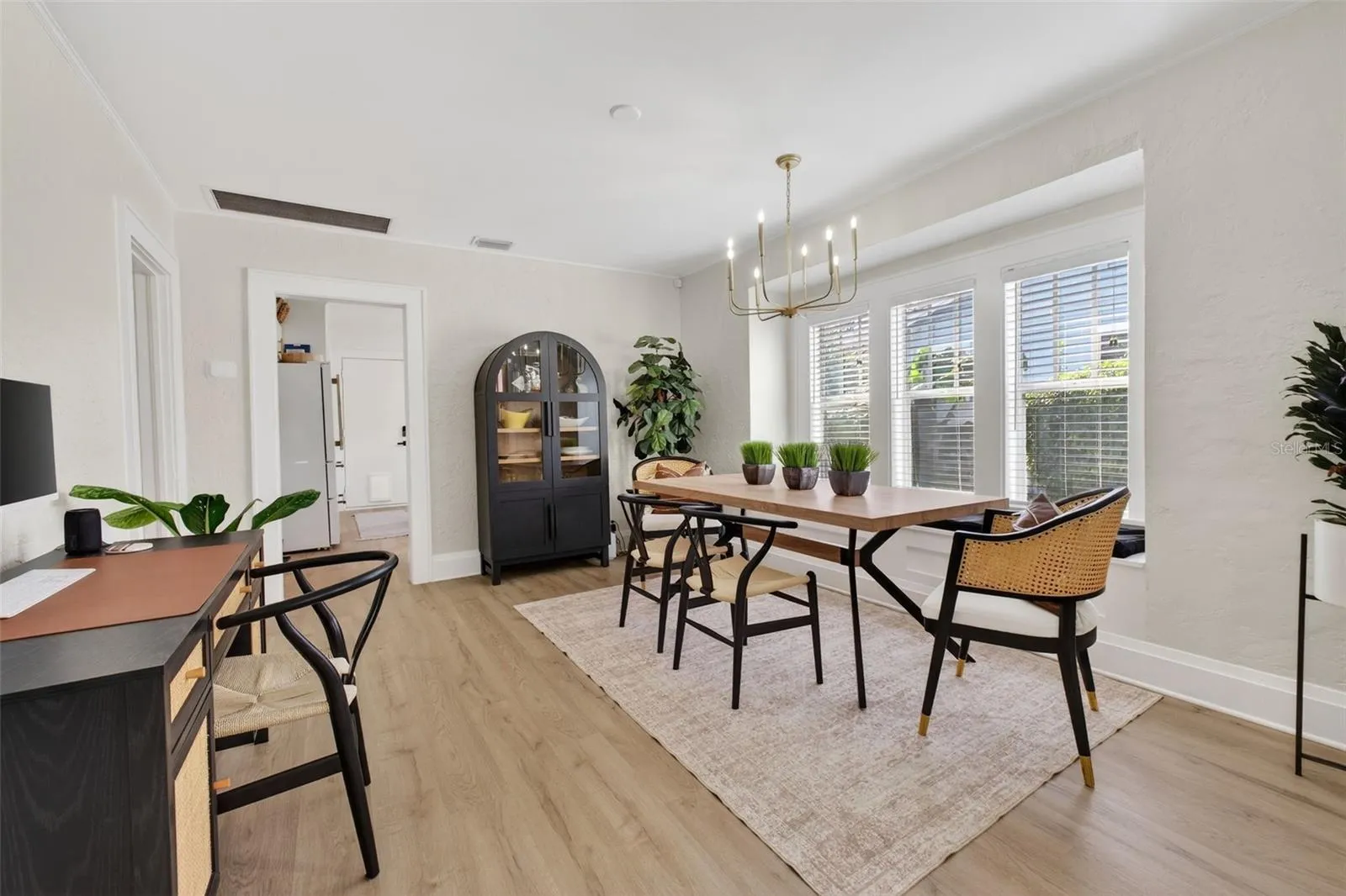 The KITCHEN has been UPDATED with NEW matte white appliances, cabinet doors, and a stylish range hood, making it both functional and delightful to cook in. Just off the kitchen sits a spacious dining room large enough to host family gatherings or dinner parties, complete with a charming WINDOW SEAT that invites you to relax with morning coffee or unwind with a book.