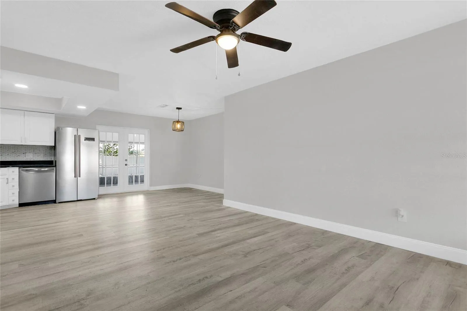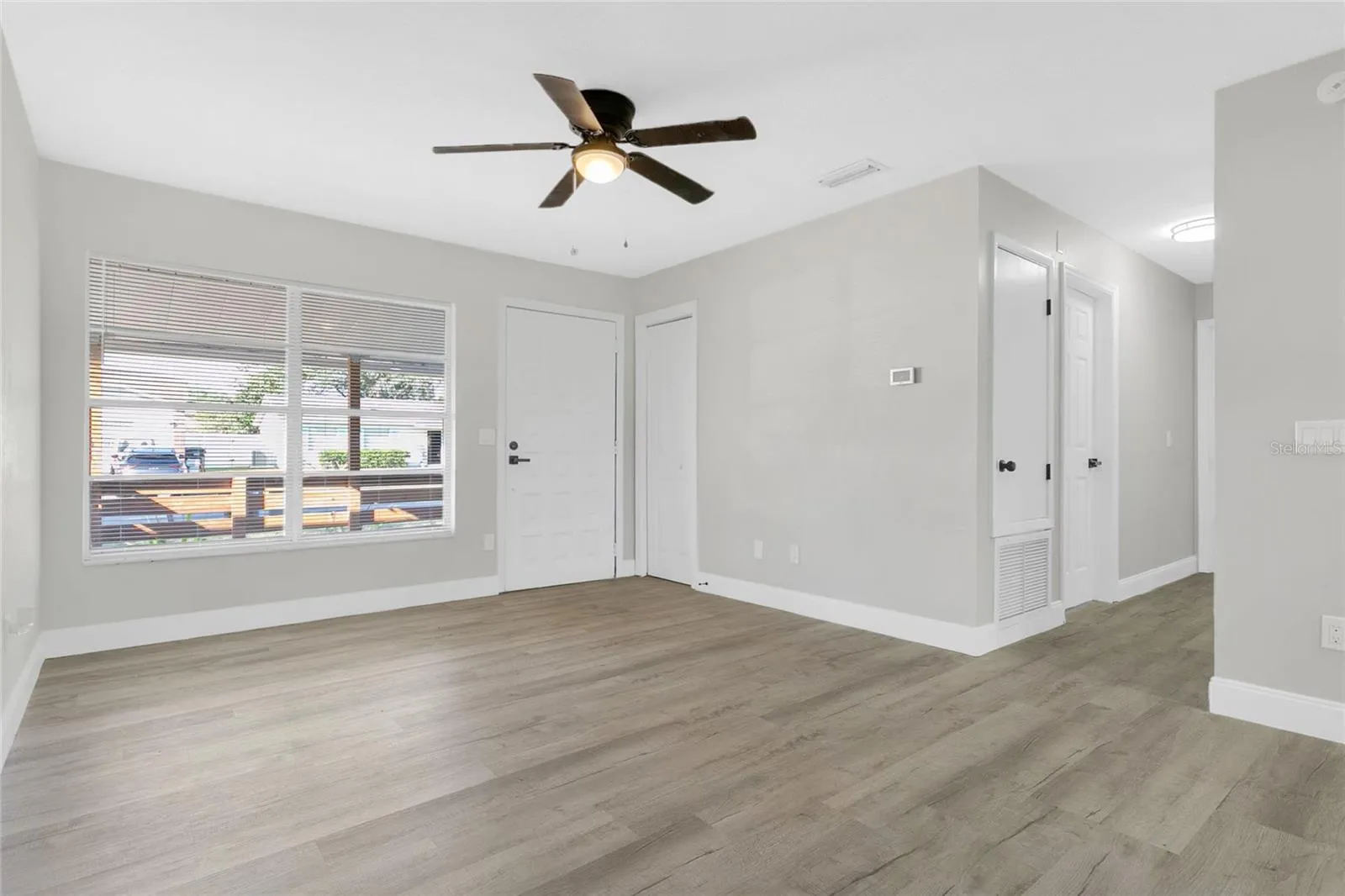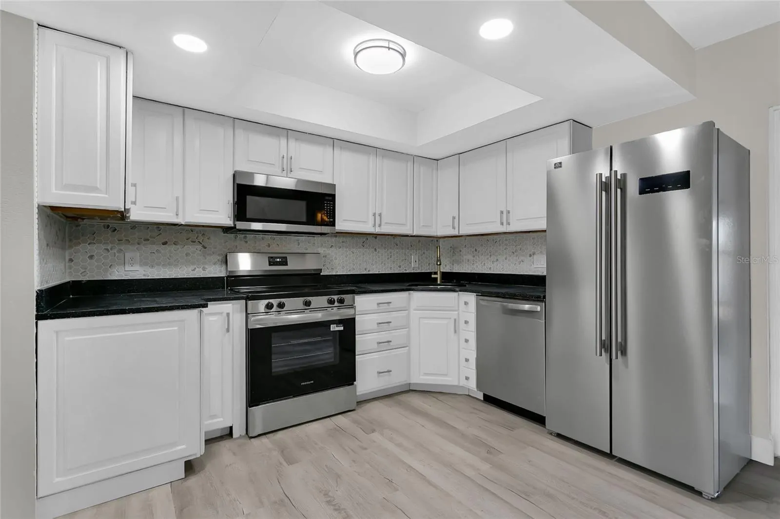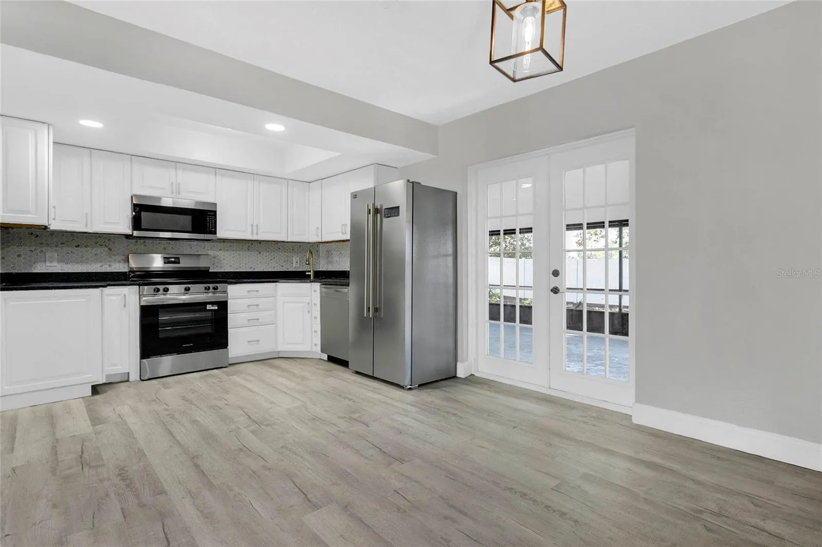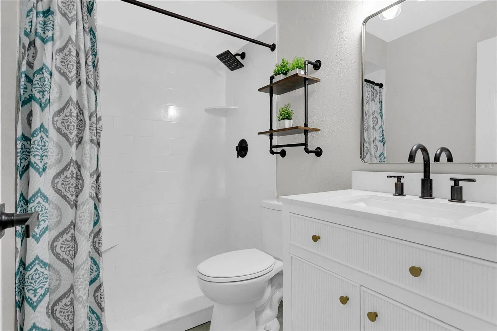 Welcome to a home that has been completely updated and curated for effortless, modern living. This 4-bedroom, 1.5-bathroom property, spanning 1,269 square feet, features fresh landscaping and a striking curb appeal with painted brick accents, a new wood entry railing, and a vibrant blue front door. Step inside to a bright, cohesive interior featuring fresh interior paint and durable, beautiful Luxury Vinyl Plank (LVP) flooring that flows seamlessly throughout the entire home. The renovation is centered around the stunning kitchen, which boasts high-end features: brand-new stainless steel appliances, quartz countertops, sleek shaker-style cabinets, a stylish tile backsplash, and new recessed lighting. It comes complete with front-loading washer and dryer, which are included with the sale, making the move-in process truly effortless. The entire property features an elegant Oil-Rubbed Bronze fixture package. The flexible layout includes three bedrooms plus a highly functional Flex Space (9’7” x 10’7”) for a home office or media room. Even the bathrooms are brand new, featuring new vanities, toilets, and shower in both the full and half-bath spaces. The property offers unparalleled peace of mind with major systems updates already complete: the A/C system is only 3 years old, the roof is 9 years old, and a newer hot water heater is installed. The entire electrical system has also been updated. The transition to the outdoor living space is seamless, made inviting by French doors that lead to the massive screened porch (24’7” x 14’5”). This expansive space overlooks the large backyard, which offers complete privacy thanks to new white vinyl fencing and the premium view of the scenic pond/water area immediately behind the property. The surrounding area provides immense convenience. You are located with easy access to Downtown Orlando, Maitland, Winter Park, and major roadways like I-4 and the 417, making commuting simple. Shopping, dining, and local amenities are minutes away, positioning this home perfectly for a convenient and high-quality lifestyle.