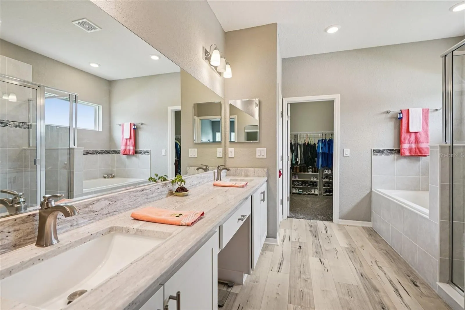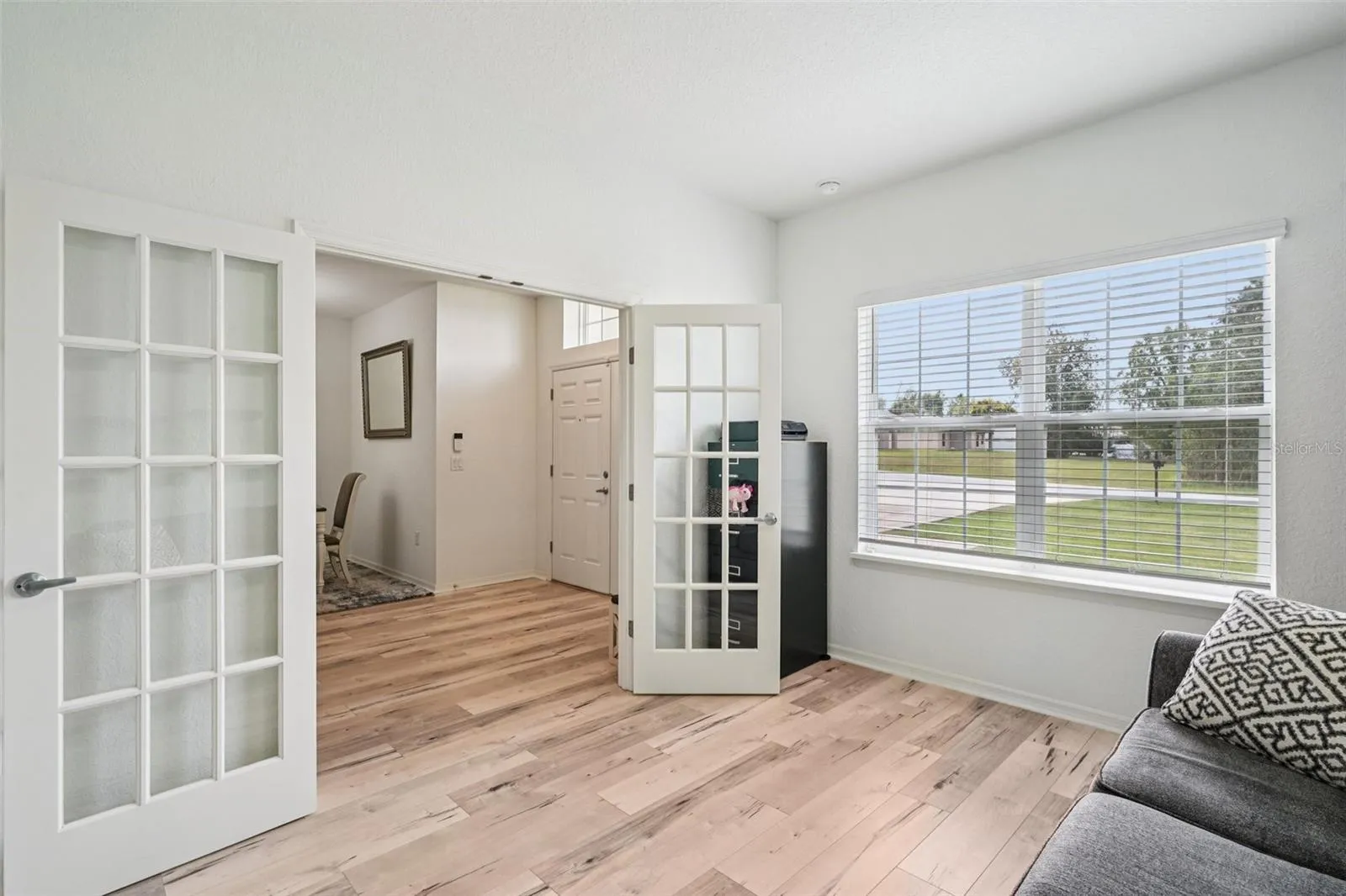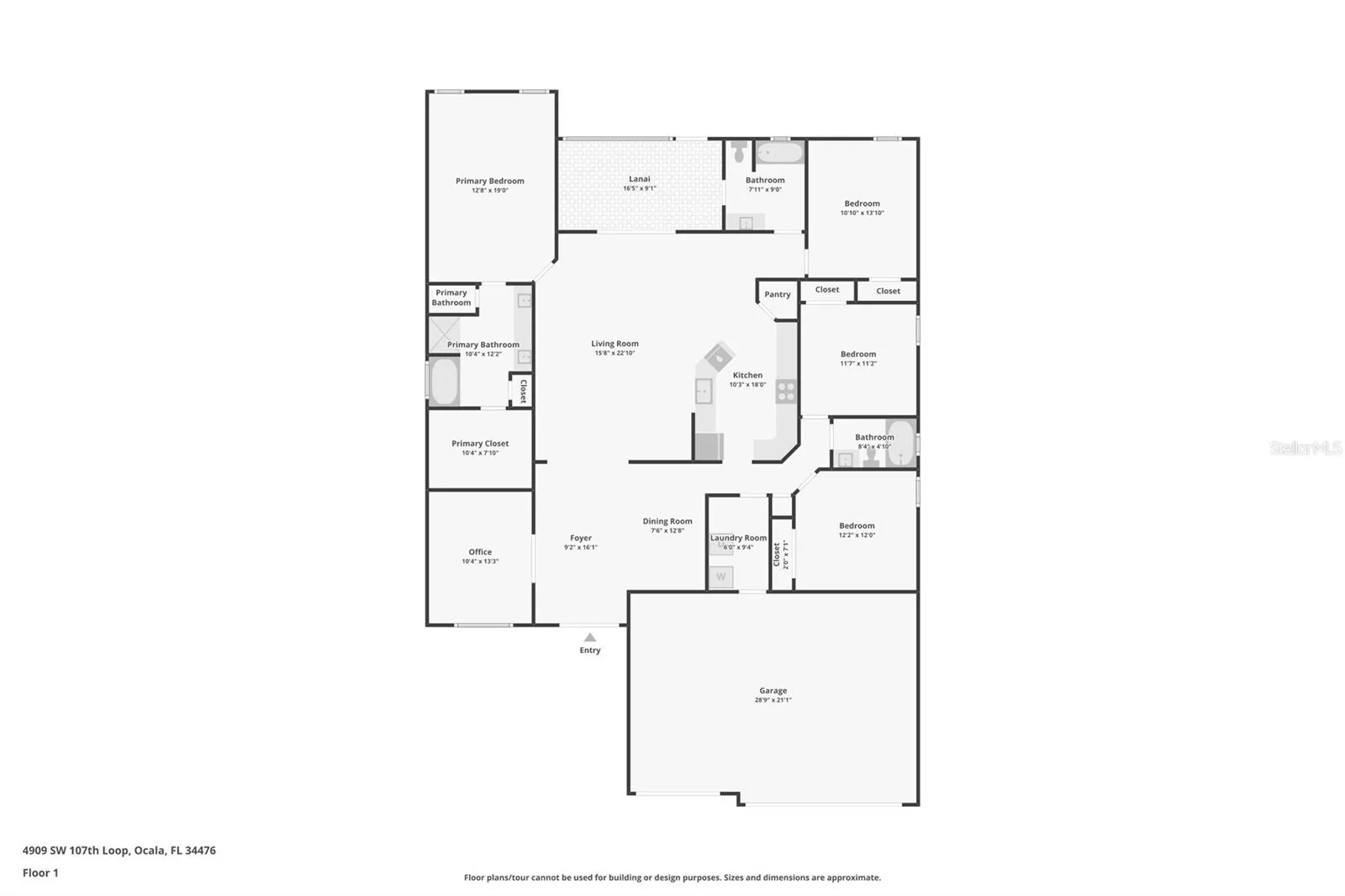 Welcome to this beautifully designed 4-bedroom, 3-bathroom home in the sought-after Kingsland Country Estate. Built in 2022 and set on just under half an acre, this 2,370-square-foot property also includes a separate office that can easily serve as a fifth bedroom. Step inside and you’ll be greeted by an open layout accented with elegant archways leading to the main living area. The formal dining room adds a touch of sophistication, while the spacious living room flows seamlessly into the kitchen. Here you’ll find quartz countertops, a modern backsplash, a breakfast bar, and stainless steel appliances. The primary suite is a true retreat, featuring tray ceilings, a large walk-in closet, and an en suite bathroom with dual sinks, a soaking tub, and a walk-in shower. The split-bedroom floor plan offers privacy, with all bedrooms featuring new high-end carpet and bathrooms enhanced with granite countertops. Luxury vinyl flooring runs throughout the main living areas, creating both style and durability. Relax or entertain outdoors in the covered, screened-in lanai that overlooks the spacious backyard. A 3-car garage completes the home, offering plenty of space for vehicles and storage. Conveniently located near grocery stores, shopping, golf, and nature reserves, this home offers both comfort and convenience in a desirable setting. Mortgage savings may be available for buyers of this listing.