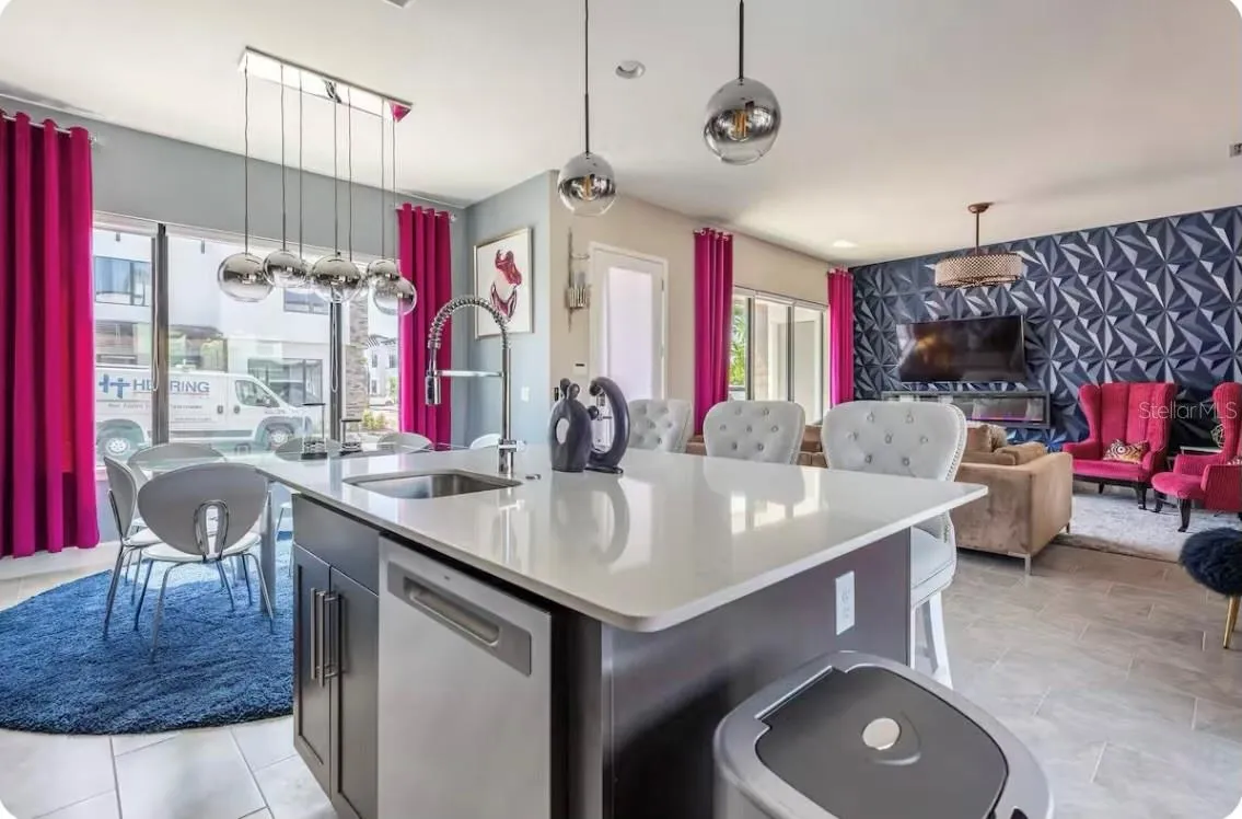 Experience the ultimate in comfort and convenience with this stunning fully furnished 5-bedroom home, complete with a private pool and garage! Nestled in a gated community just 8 miles from Disney, this property offers access to a clubhouse, fitness center, pool, spa, and more. Perfectly located near I-4 and US-27, you’ll be minutes away from top entertainment, dining, and family-friendly attractions. Enjoy hassle-free living with internet, cable TV and lawn care included in the rent. (Mandatory weekly pool care additional cost.) Don’t miss this opportunity to call this incredible home yours—schedule a showing today!