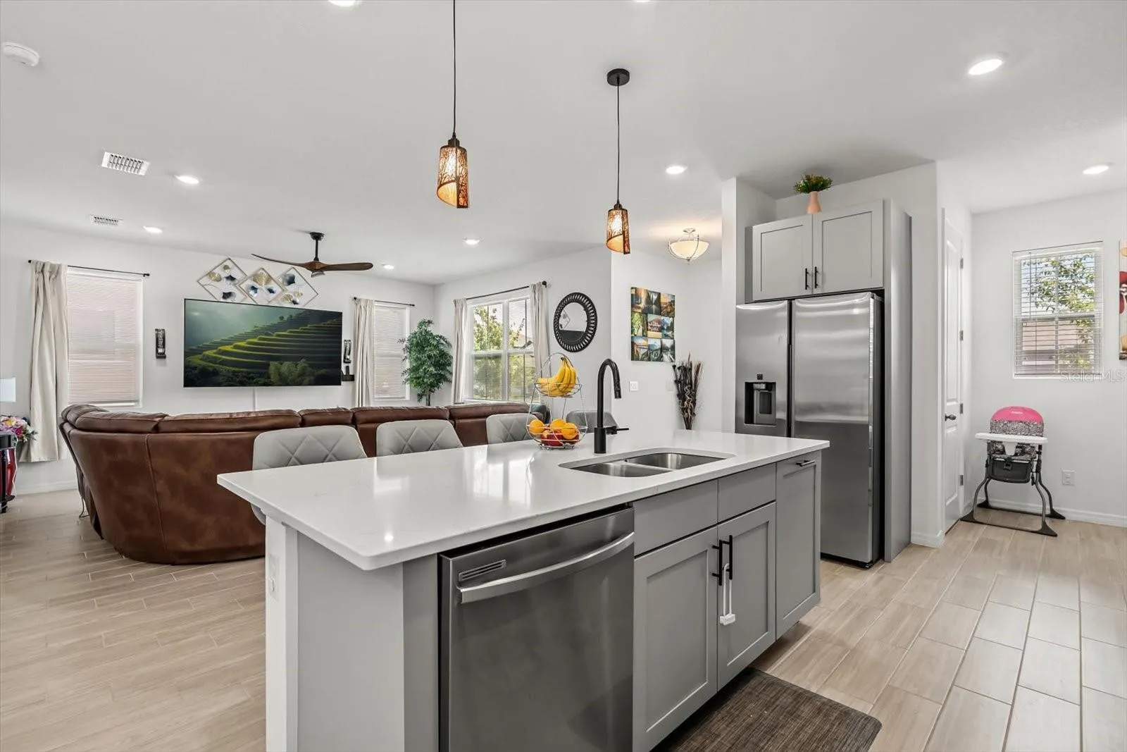The home features more than $25,000 in interior upgrades, including upgraded flooring, designer finishes, enhanced lighting, and a beautifully appointed kitchen. A $10,000 professionally installed fenced yard provides added privacy and outdoor usability from day one.