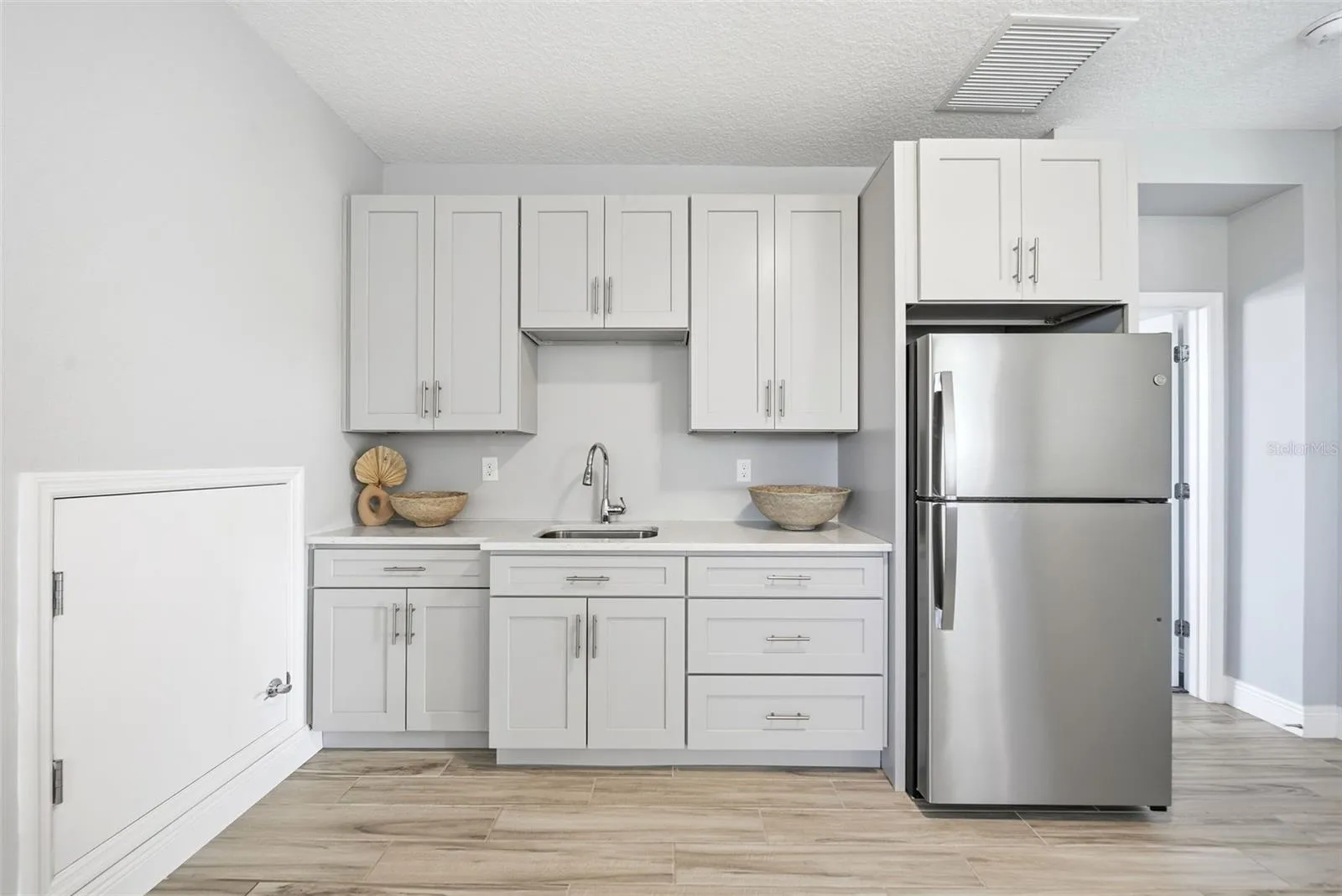 Stepping outside feels like arriving at your own private retreat. With no rear neighbors, you’ll enjoy quiet mornings, peaceful evenings, and year-round privacy. The extended saltwater pool sits within a spacious screened cage complete with built-in lighting for nighttime enjoyment. The resort-style outdoor kitchen elevates entertaining with natural gas appliances, including a built-in cooler, griddle/flat top, stovetop burner, refrigerator, grill, and two mounted TVs, making it effortless to host everything from family dinners to game-day parties. Beautiful paver surfaces extend across the front porch, rear porch, pool deck, and driveway, creating a polished and cohesive exterior look. A dedicated pool bath adds convenience for swimmers and guests alike.