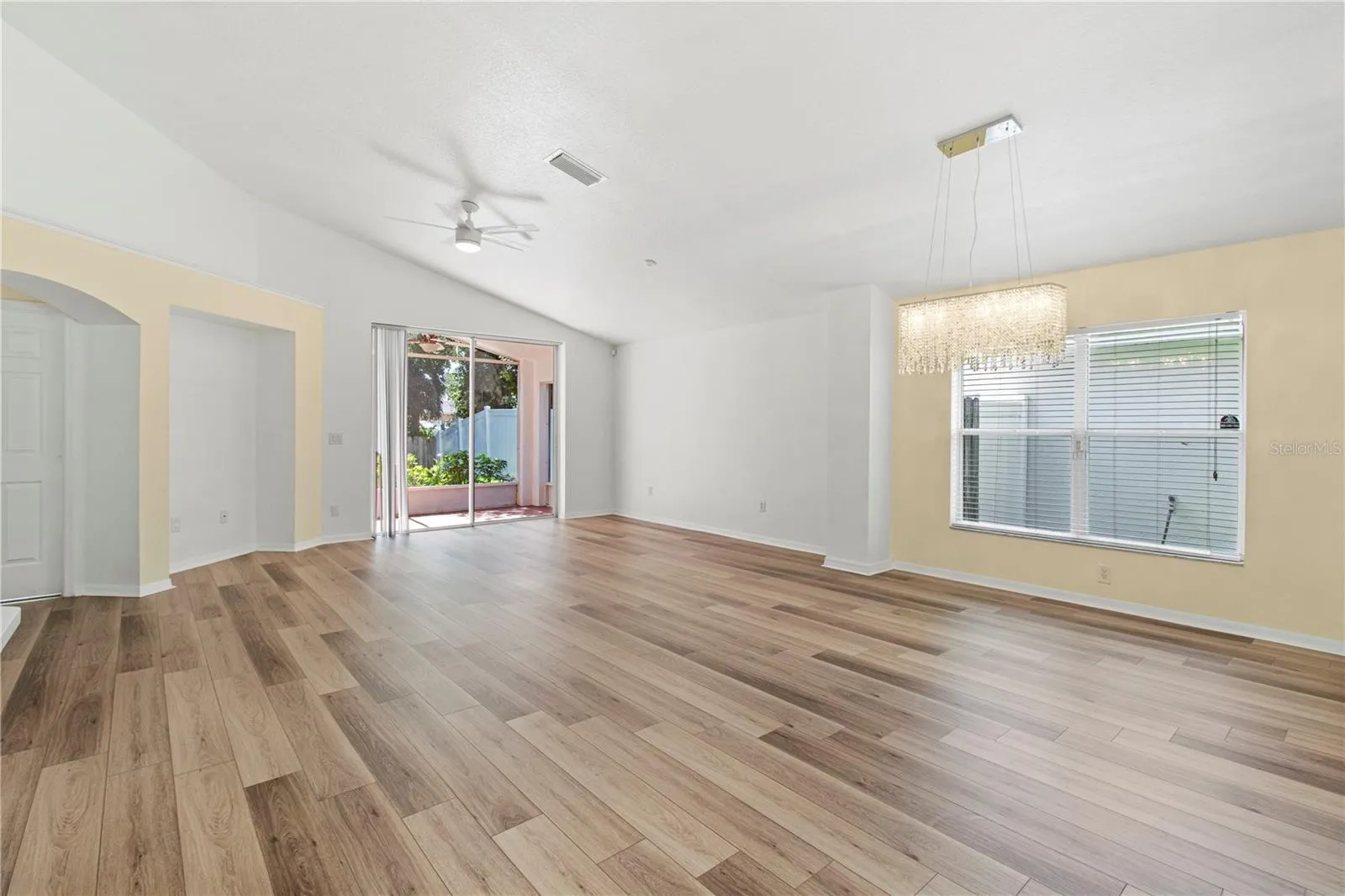 Beautifully presented! This 3 bedroom + den, 2 bath home located in the desirable community of Lake St Charles has everything you would want in your new home. The open, split floor plan offers the perfect combination for entertaining and privacy. Kitchen boasts stainless appliances, quartz counters, plenty of cabinet space with pull out drawers , breakfast nook and a breakfast bar that overlooks the dining room and living room. Master bedroom features en-suite with dual vanities, separate shower and garden tub as well as walk-in closet. Located towards the front of the home, the secondary bedrooms share the additional bathroom. The den could be used as a fourth bedroom or great office space. From the living room, sliding glass doors lead out on the screened in lanai. It is the perfect place to relax after a long day and enjoy the added privacy of a fully fenced in yard. Community amenities include: tennis courts, playground, dog parks, baseball/soccer fields, basketball courts, sand volleyball court, clubhouse, pool and hot tub, 3 miles of walking trails, 72-acre lake & docks. This property is well located just off US-301, with easy access to the Selmon Expressway and I-75.