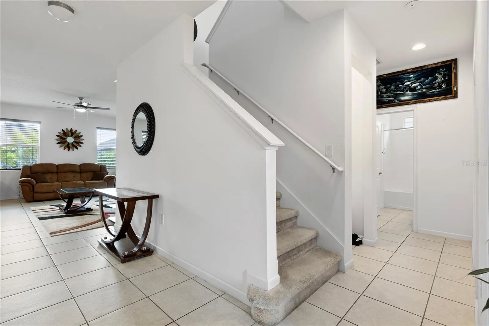 Now available for lease in the desirable Trinity Ridge community of Davenport, FL! This spacious 4-bedroom, 3-bath single-family home offers an open-concept floor plan with abundant natural light, perfect for comfortable living. Interior Features: Modern kitchen with stainless steel appliances, granite countertops, and ample cabinetry. The primary suite, located upstairs, includes a walk-in closet and en-suite bath with dual vanities. Upstairs you’ll also find two additional bedrooms and a full bath. Flooring features tile in the downstairs living areas for easy maintenance and carpet in bedrooms and upstairs spaces for added comfort. A large bedroom on the first floor is paired with a complete bathroom, offering excellent flexibility for guests, multigenerational living, or a private office.