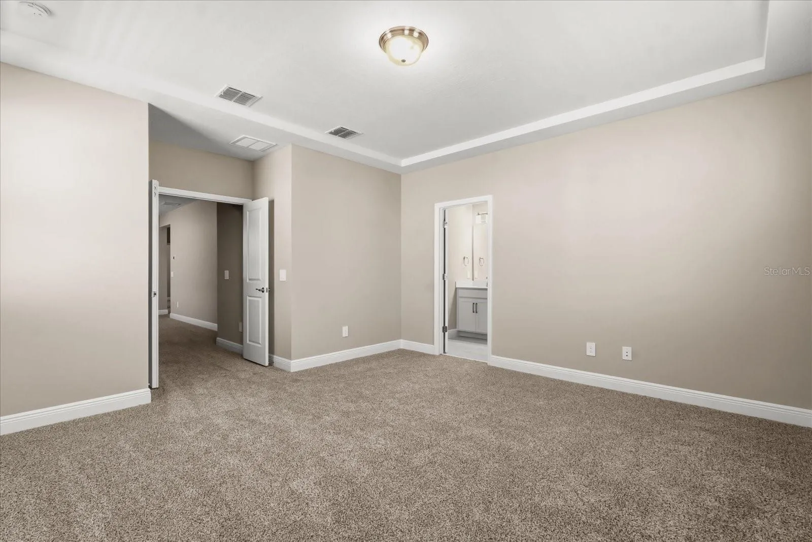 Upstairs, the primary suite boasts an oversized walk-in closet, dual sinks, and a standing shower.