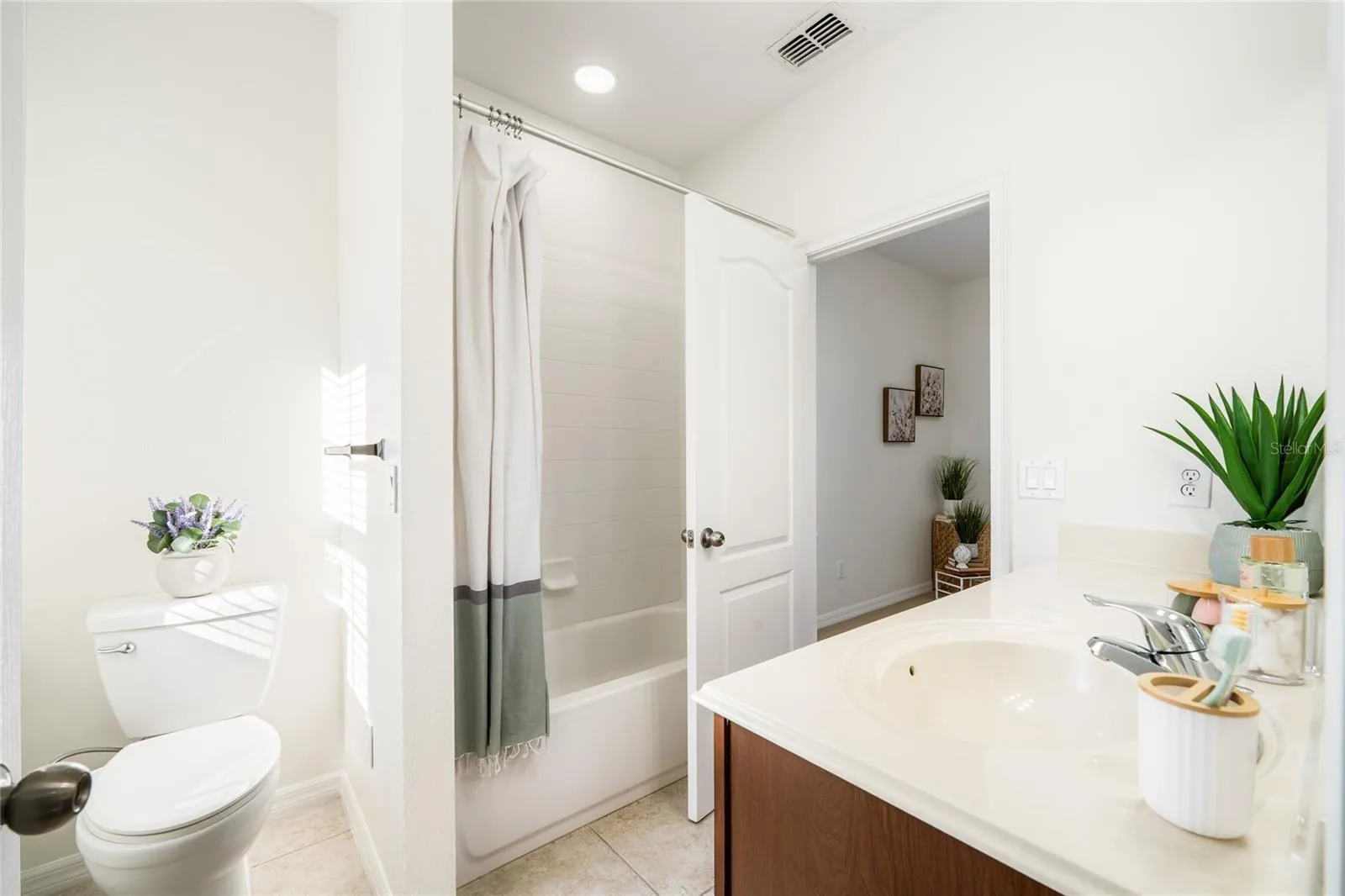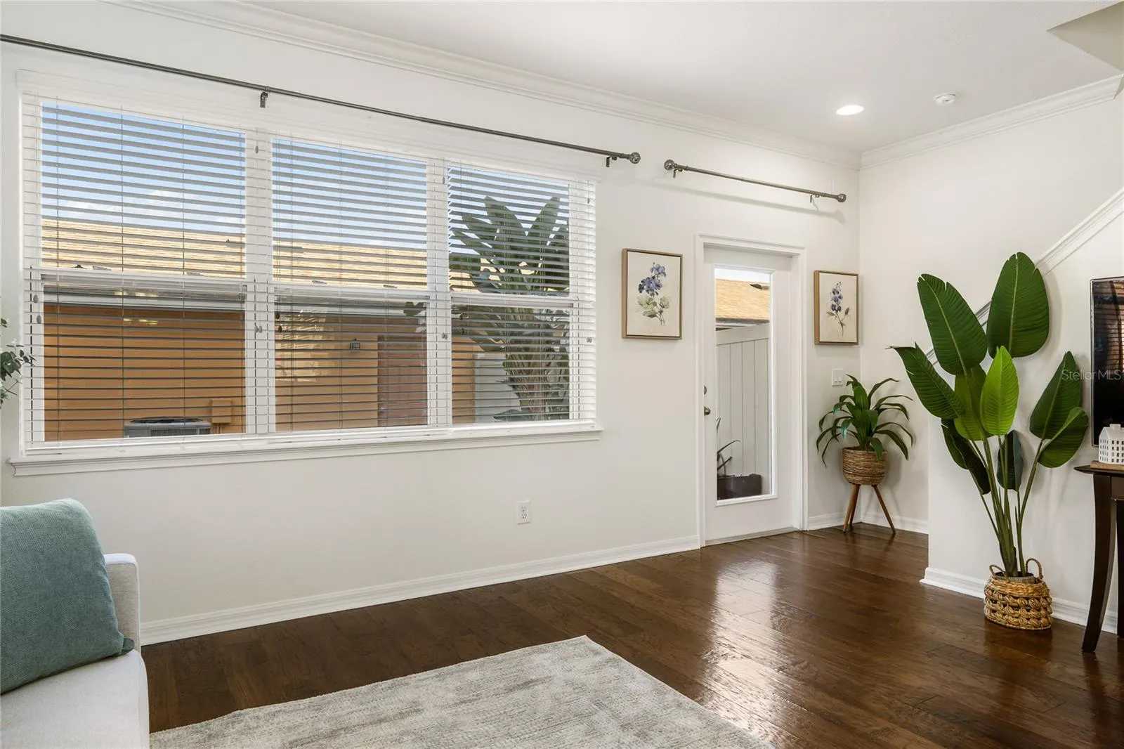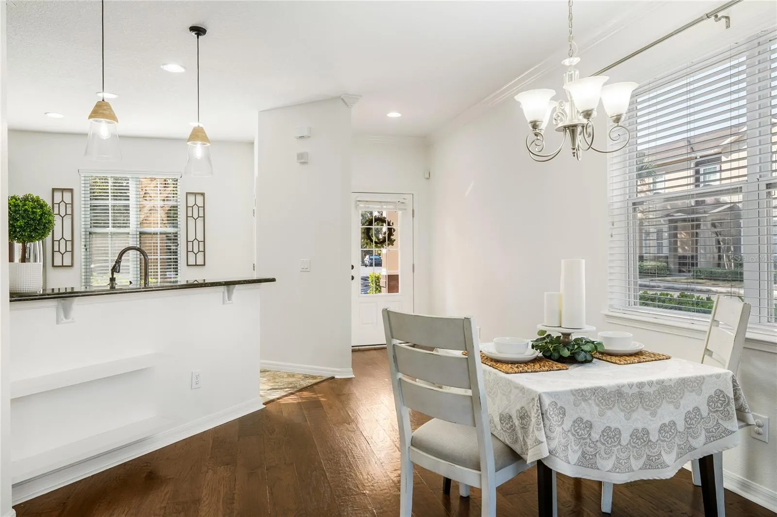 Light and Bright END UNIT townhome offers tons of windows and a rear water view. FRESH PAINT throughout the entire home! Large kitchen with granite counter, stainless steel appliances and closet pantry overlooks the great room. Great Room flooring is hand-scraped wood giving an authentic feel. Primary Bedroom has walk-in closet with an ample amount of built in cabinetry. All 3 Upstairs bedrooms all have an attached bathroom. Laundry closet near the bedrooms come with washer and dryer on pedestals. Relax in a private courtyard complete with engineered wood deck and landscaping all leading to the 2 car garage. Quiet gated neighborhood with quick access to I-4, SR417 and SR429 makes any commute a breeze.
