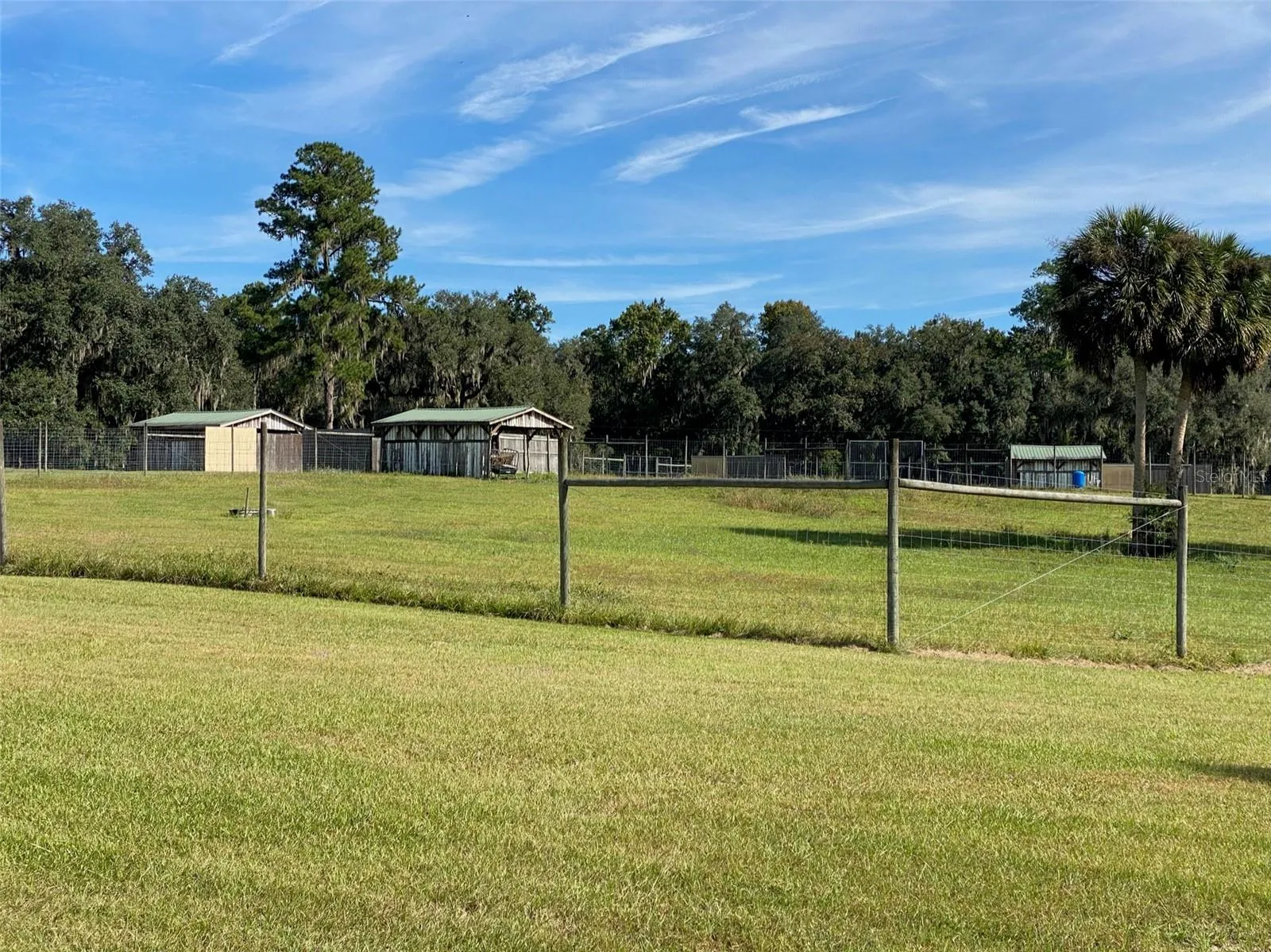 The horse farm area is comprised of about 180 acres, having a perfect set up for training and breeding, and was built by one of the most prominent horse trainers in Ocala. Additional farm amenities include a 12 stall center aisle barn, a 40X60 large barn with 14 foot sliding doors, a maintenance shop, small house plus 2 mobile homes. The separate gated entrance off 318 leads to a 24 stall barn with apartment, a covered Eurociser & a swimming pond for horses that is perfect for layups or conditioning your horses, RV hookups, and lush green paddocks with automatic waters.
