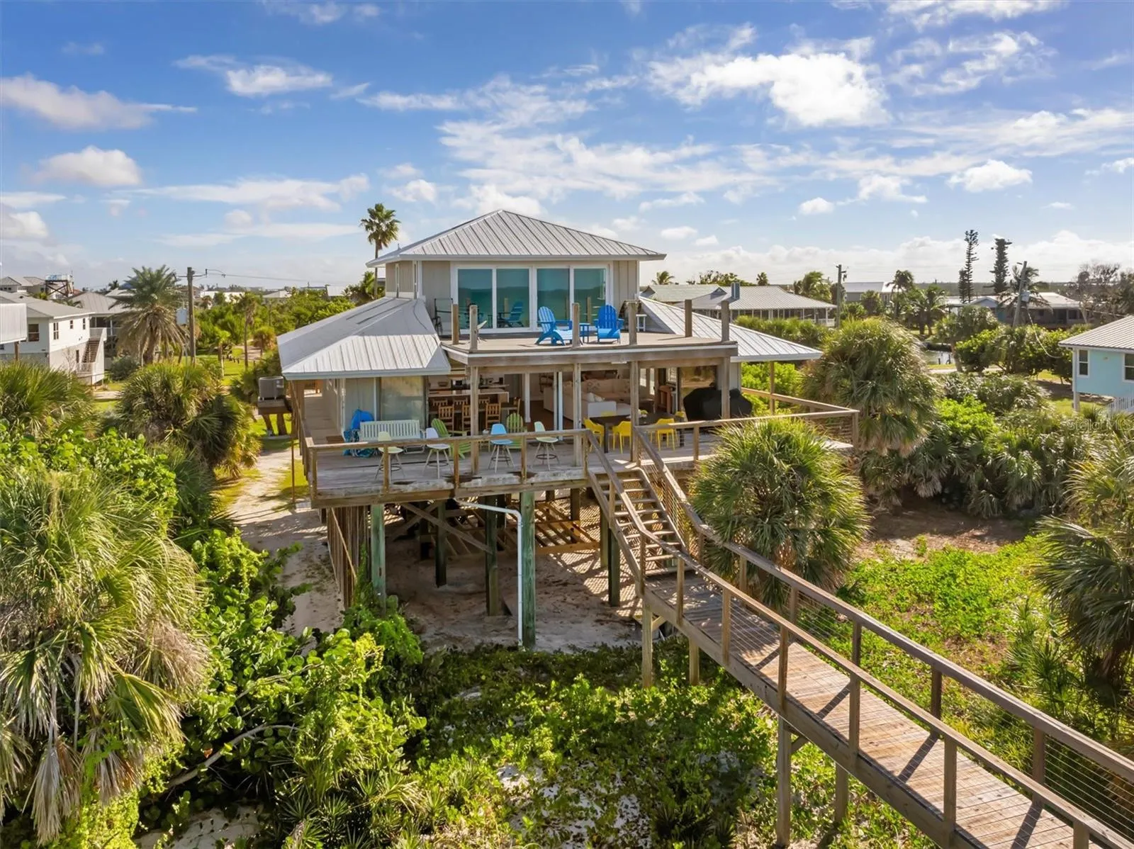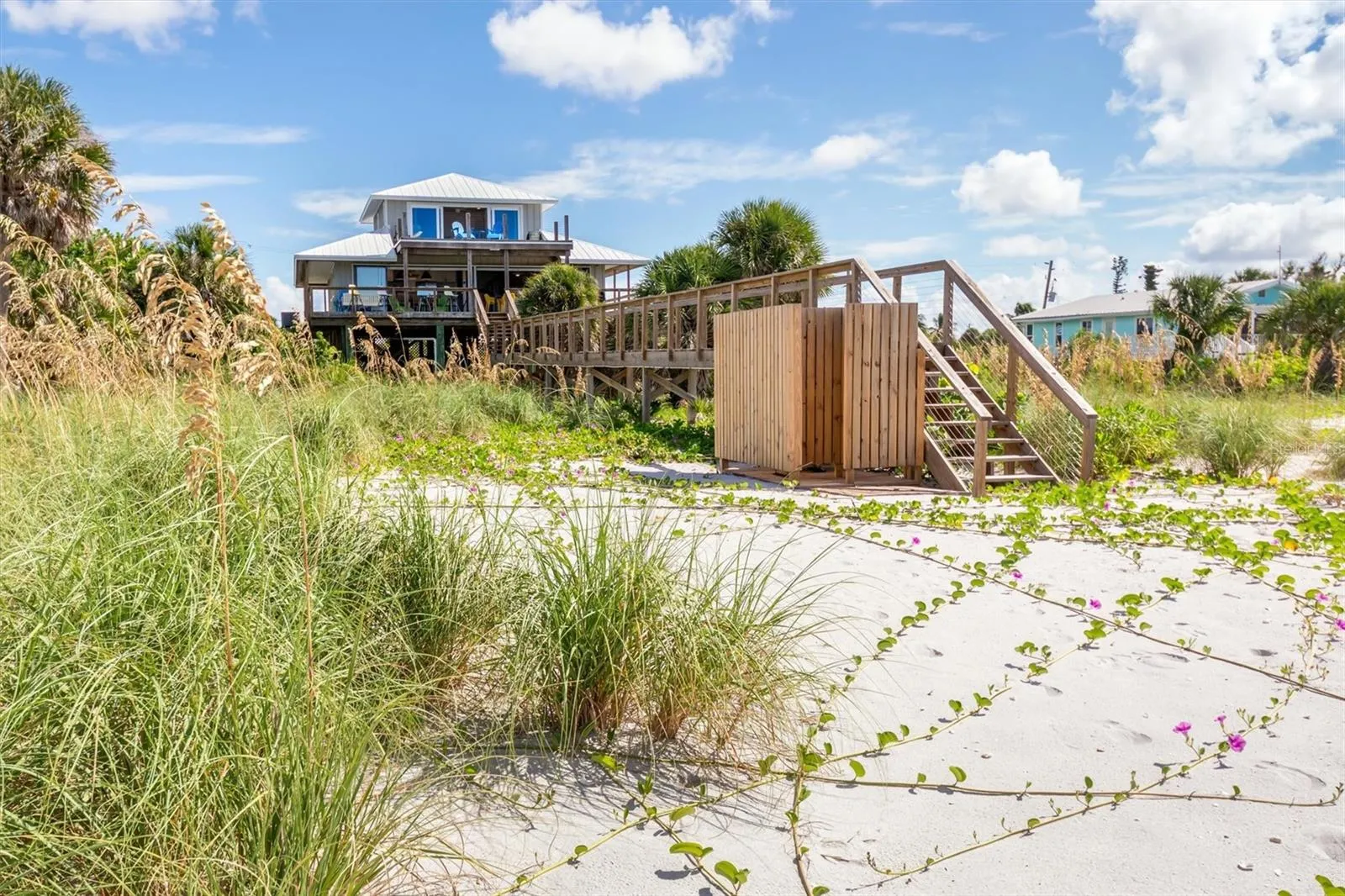 CURRENTLY UNDER RENOVATIONS FROM THE HURRICANE…..Can be rented weekly for $2,800 . Direct Gulf front home on the sunny, pristine beaches of Little Gasparilla Island (near the south end)! Enjoy both upper and lower decks, giving you access to that perfect tan, or shady afternoons spent relaxing and watching the lazy blue-green waters of the tranquil Gulf of Mexico. The private dune walkover will take you down onto the sand, where you can hunt for shark’s teeth and seashells to your heart’s delight. It’s not uncommon to catch a passing dolphin, schools of fish, and other sea life in its natural habitat. This roomy home has stainless appliances, two master suites, an outdoor dining area with propane grill on the wrap around porch, and more – everything you need to make memories. Sunsets are free – shhhhhh, it’s our secret!