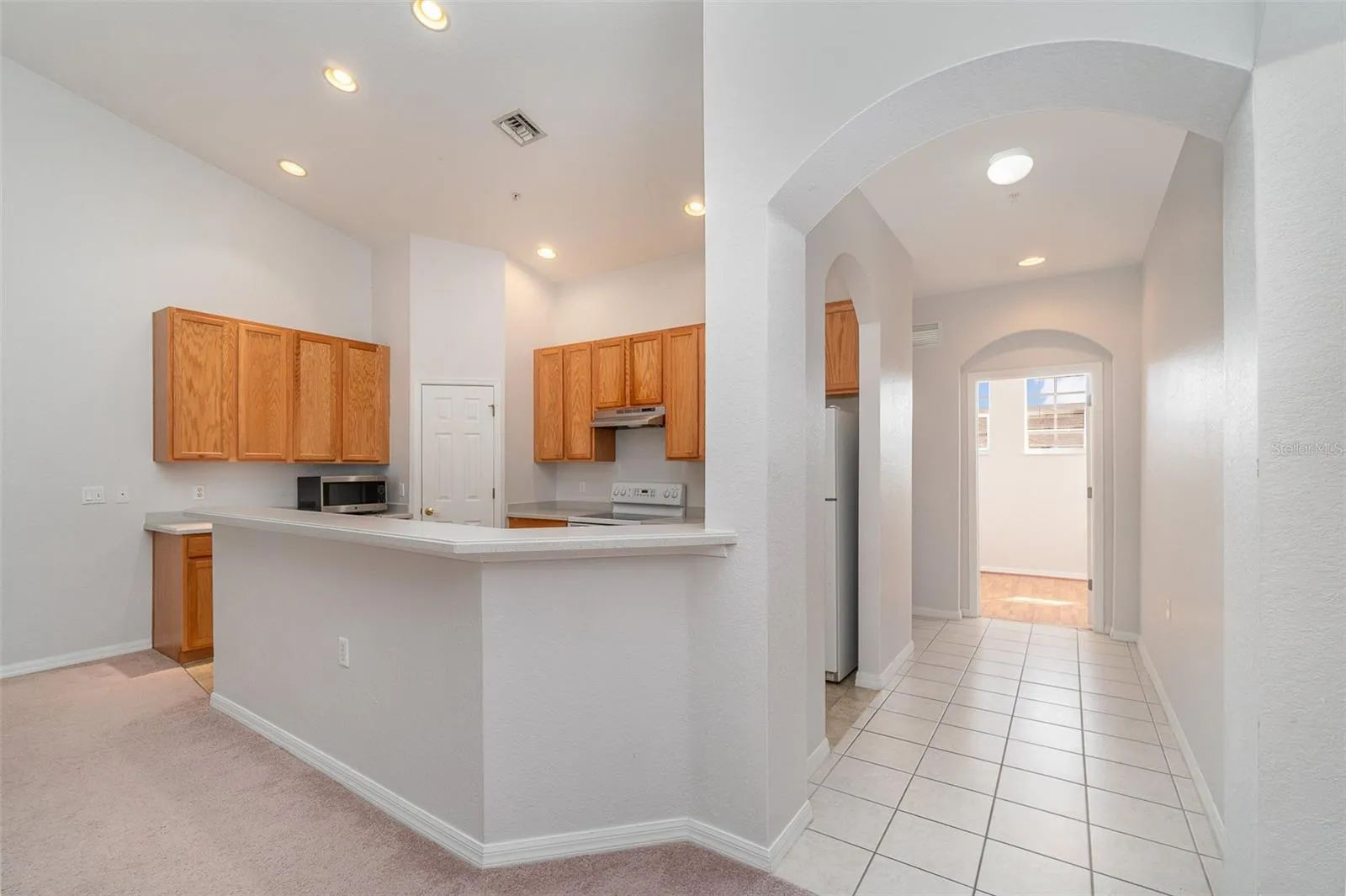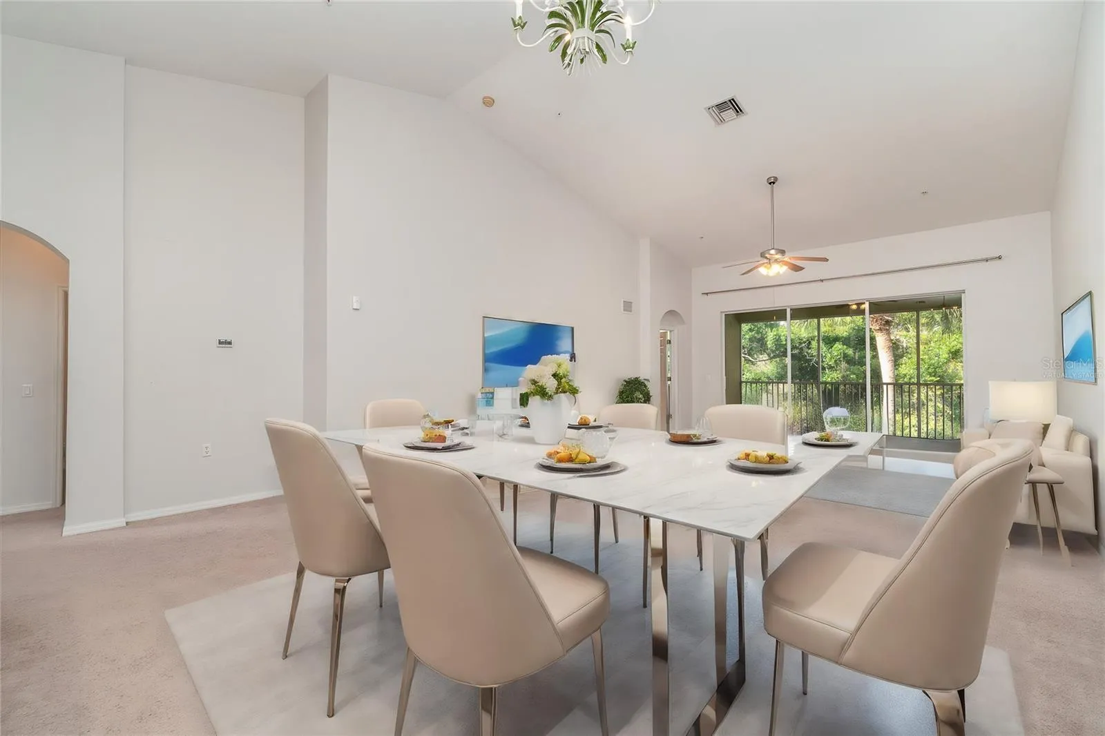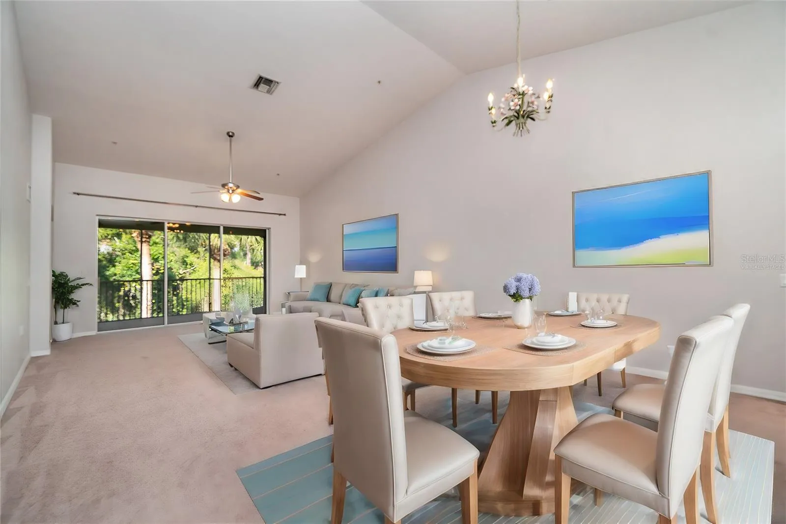This gorgeous second-floor residence includes a garage plus outside parking and welcomes you with vaulted ceilings which cascade bright natural light throughout the living spaces creating an appealing atmosphere of warmth and openness. Crafted with an eye for detail, the open floor plan defines modern living. The spacious living area seamlessly blends with the dining space and kitchen making it ideal for gatherings. Whether hosting friends and family or enjoying a quiet evening at home, every moment feels warm and inviting. The kitchen is a masterpiece of design, equipped with top-end appliances, ample storage, and sleek Corian countertops. The den highlights this home’s versatility giving you a bonus space which you can adapt to fit your lifestyle. This area can easily be utilized as a third bedroom, a home office, or as a creative space.