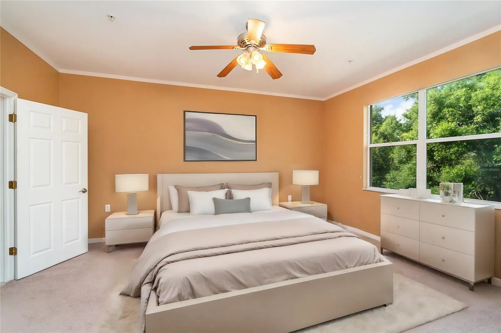 Within the spacious primary bedroom suite, luxury and comfort converge. A large walk-in closet provides ample space for wardrobe and storage while the primary bath is a haven of relaxation. Dual sinks, a huge sunken tub for indulgent soaking and a separate shower offer a spa-like experience every day.