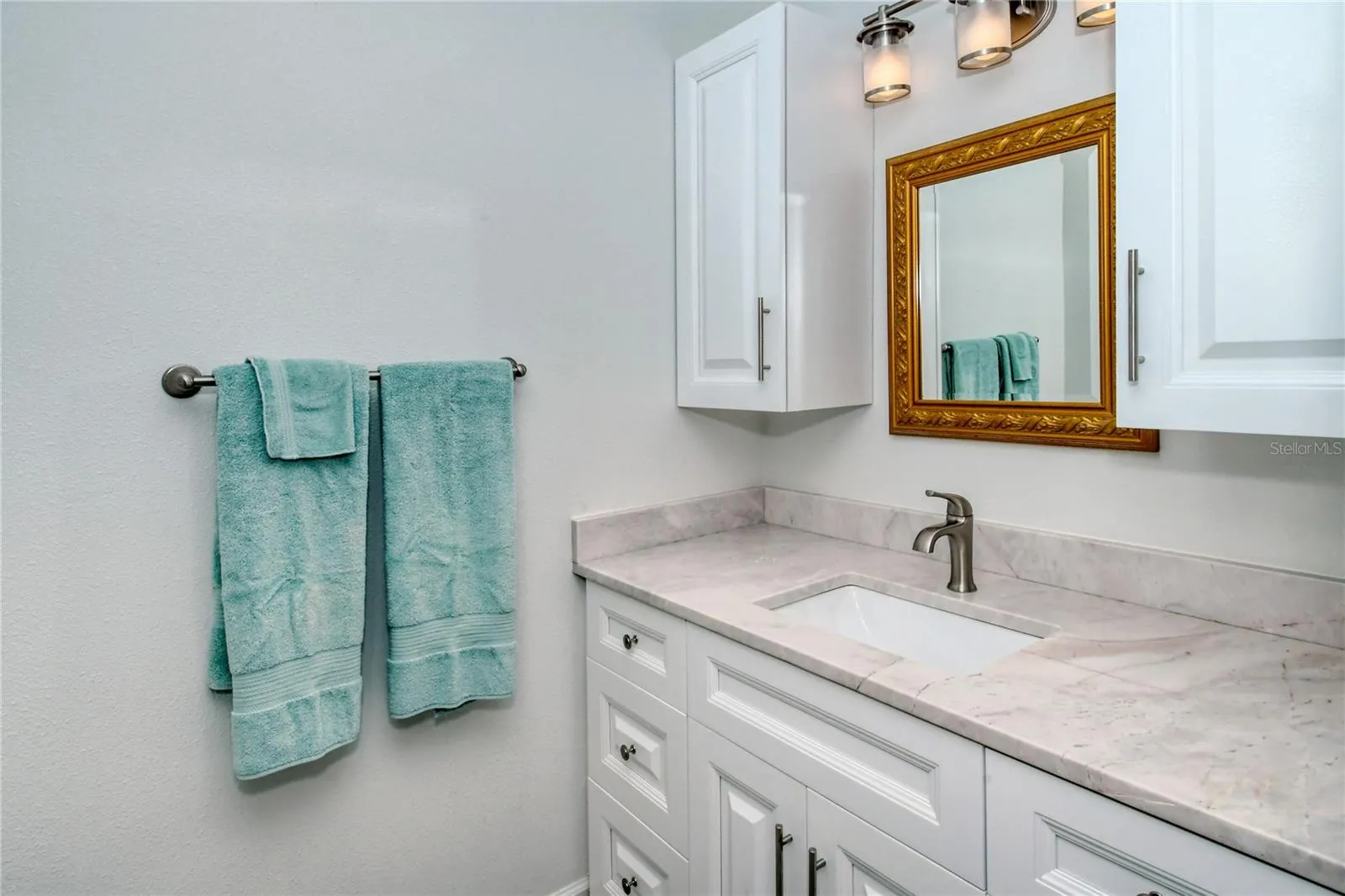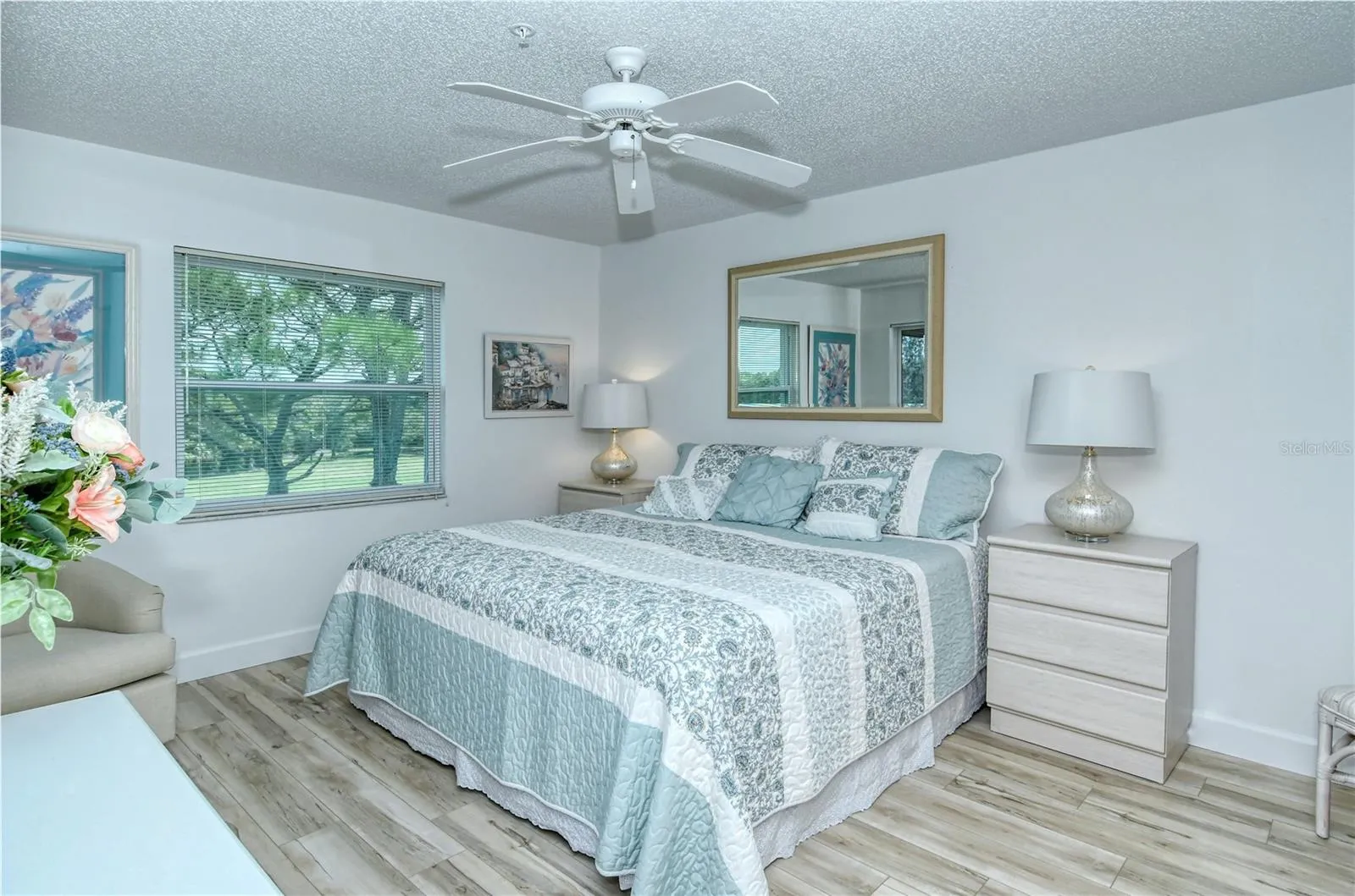 RENTED JAN., FEB., MARCH, 2026 – available APRIL THRU DECEMBER 2026: BEAUTIFULLY UPDATED: Enjoy the view across the golf course from the screened lanai of this exceptional 3rd-floor vacation condo at the Terraces of Stoneybrook, NEW KITCHEN, NEW APPLIANCES, NEWLY REMODELED BATHROOMS, NEW FLOORING – It’s stunning. Play golf, hit the tennis courts, take a dip in the crystal clear heated pool or enjoy a game of pickleball, it’s all here waiting for you. The large master suite with sliding glass doors out onto the lanai has a king-sized bed and en-suite has been upgraded and has walk-in shower. The guest bedroom has twin beds and an adjacent guest bathroom. This bright and cheerful interior with spacious high ceilings offers over 1200 sq. ft. of living space. The condo is well furnished and is equipped with flat-screen smart TVs and internet access. Stoneybrook Golf & Country Club has undergone a Kipp Schultes designed golf modernization, and is said to be one of the best courses on the West Coast of Florida. Enjoy Har-Tru tennis courts, bocce ball, fitness center, pro shop, full-service restaurant, bar, and outdoor patio and is centrally located in Palmer Ranch close to area beaches, shopping, restaurants, and Costco and the Legacy walking and biking trail are nearby. The golf membership transfers (inquire about the new fee schedule) if desired or you can take out a social membership for a nominal fee and enjoy all the country club has to offer without golf.