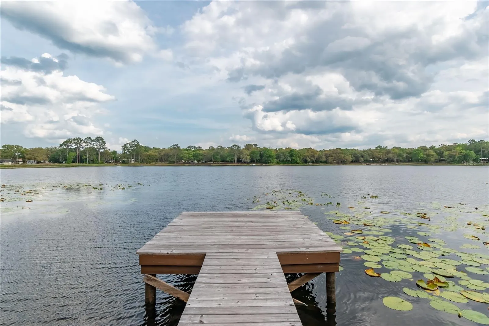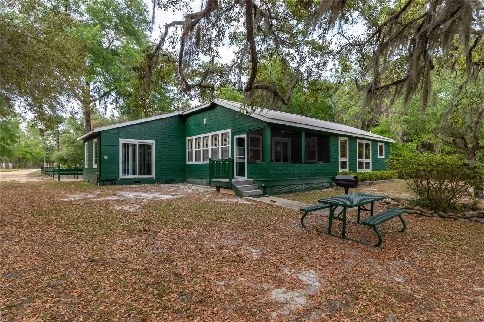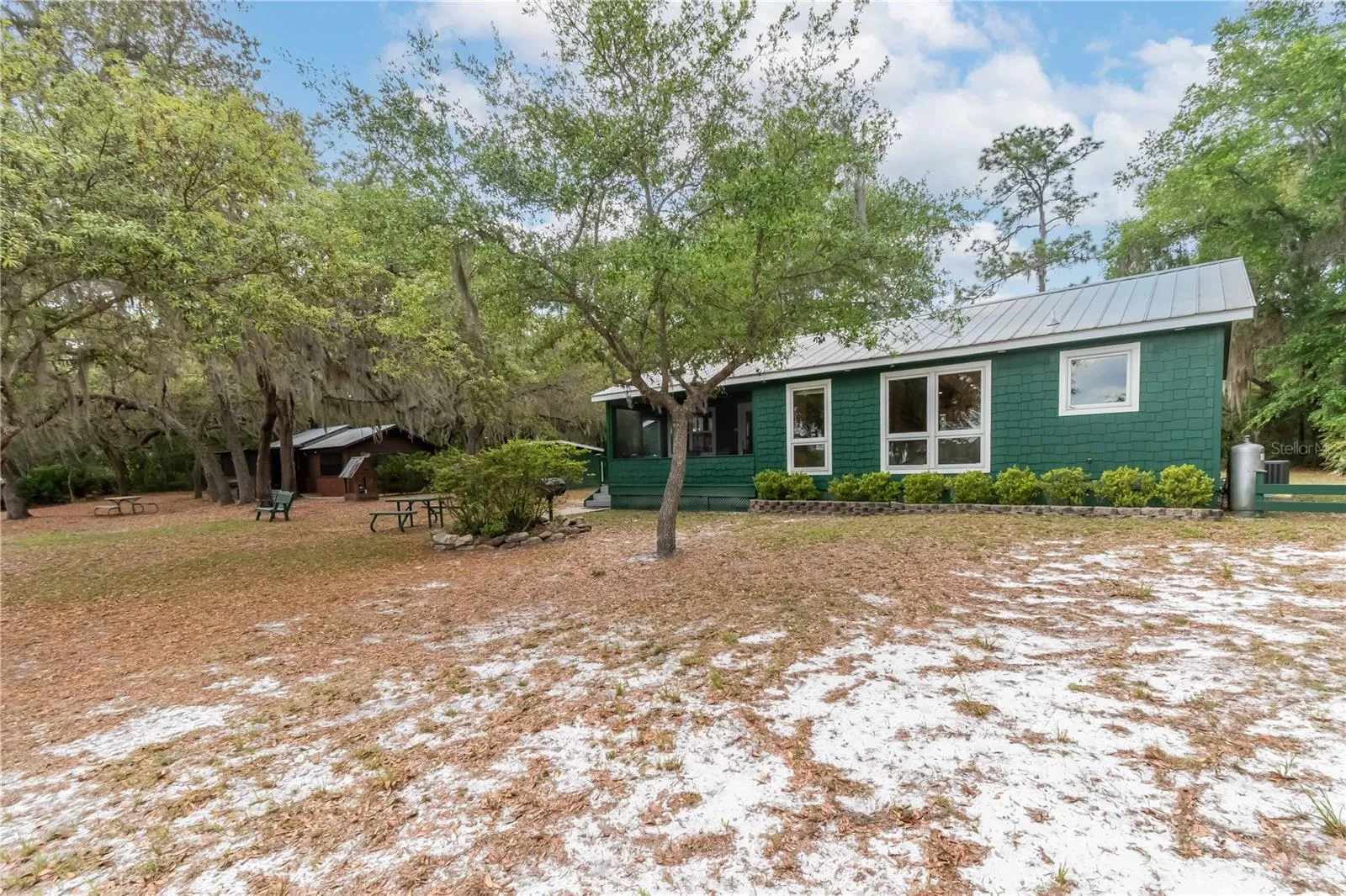 Breezy waterfront living never provided so much potential! Overlooking the sparkling spring-fed Miles Kale Lake in the quiet area of Fort McCoy, this property offers a total of three parcels that each feature roughly 100 ft. of shoreline and a combined 1.91 acres. All of the acreage is fenced, and 2 residences rest on two of the parcels, with the third lot being left in a more natural state as a lovely heavily wooded area. Move-in ready, both homes have been lovingly maintained and are move-in ready with full furnishing. Used currently as VRBO, there is ample potential to continue this usage without much fuss or to instead use this as a personal vacation compound or as year-round residence with a designated guest, in-law, or rental home. On the northern lot is the home named The Big Green House– offering a total of 2-bedrooms and 2-baths, the home was meticulously rebuilt and expanded with all new plumbing, electrical wiring, trusses, a standing seam metal roof, and is highly energy efficient. The interiors feature ample natural light, tall vaulted ceilings, beautiful tongue-and-groove wood work throughout, and lots of space to enjoy. The home features a large great room, as well as a large open kitchen that includes stainless steel appliances, abundant counter and cabinet space, center island with breakfast bar, and adjacent dining nook. Both bathrooms are immaculate, with recent updates and a clean aesthetic. A large screen-enclosed porch rests to the back of the home, providing a wonderful space to enjoy stunning views of the lake and a cozy area to catch some shade. The secondary residence, called The Brown Cottage, rests on the center-most lot. Offering 1-bedroom and 1-bath, this charming cottage features a large family room, a delightful kitchen with adjacent dining area, and a great screen-enclosed porch that overlooks the lake. This home shares the rustic aesthetic of the green home, with lots of tasteful wood-work done throughout the home. A laundry shed is also attached to the home for added ease. Both residences share a well and pump, however, an additional well and pump could be added by the future buyer if desired. A private boat ramp with a recently updated dock allows for easy enjoyment of the lake, opening up a variety of uses for those who enjoy spending time on their boat. Mile Kale Lake is a wonderful, natural Florida lake with a nice sand bottom and a few unique features that make it extra exciting– the lake has a gradual slope and is deeper than many other lakes in the area. The lake is great for boating on canoes, kayaks, jet skis, or even power boats with other boats rarely being seen on the lake to provide little to no disruption on most days. Many other lakes are also in the area, making this an ideal property for those looking to discover the many options Central Florida has to offer! If you’re ready to take in pristine water-front views or are looking for an income producing opportunity, this property is a wonderful option to consider!