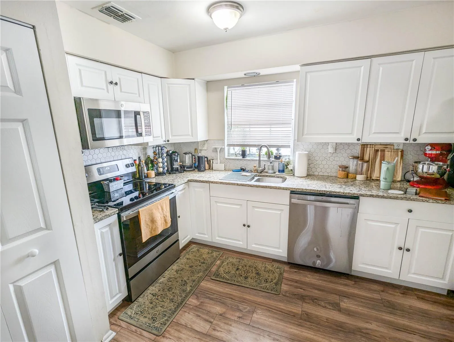 Updated 2-bedroom, 2-bath condo featuring modern finishes throughout! This condo features laminate floors, sleek granite countertops, and stainless steel appliances in the kitchen. A rare find with an in-unit washer and dryer for added convenience. Step out onto the brand new deck, upgraded with durable composite decking—perfect for relaxing or entertaining. Ideally located just minutes from Full Sail University, UCF, and Valencia College, making it a prime spot. Don’t miss this stylish, move-in-ready condo!