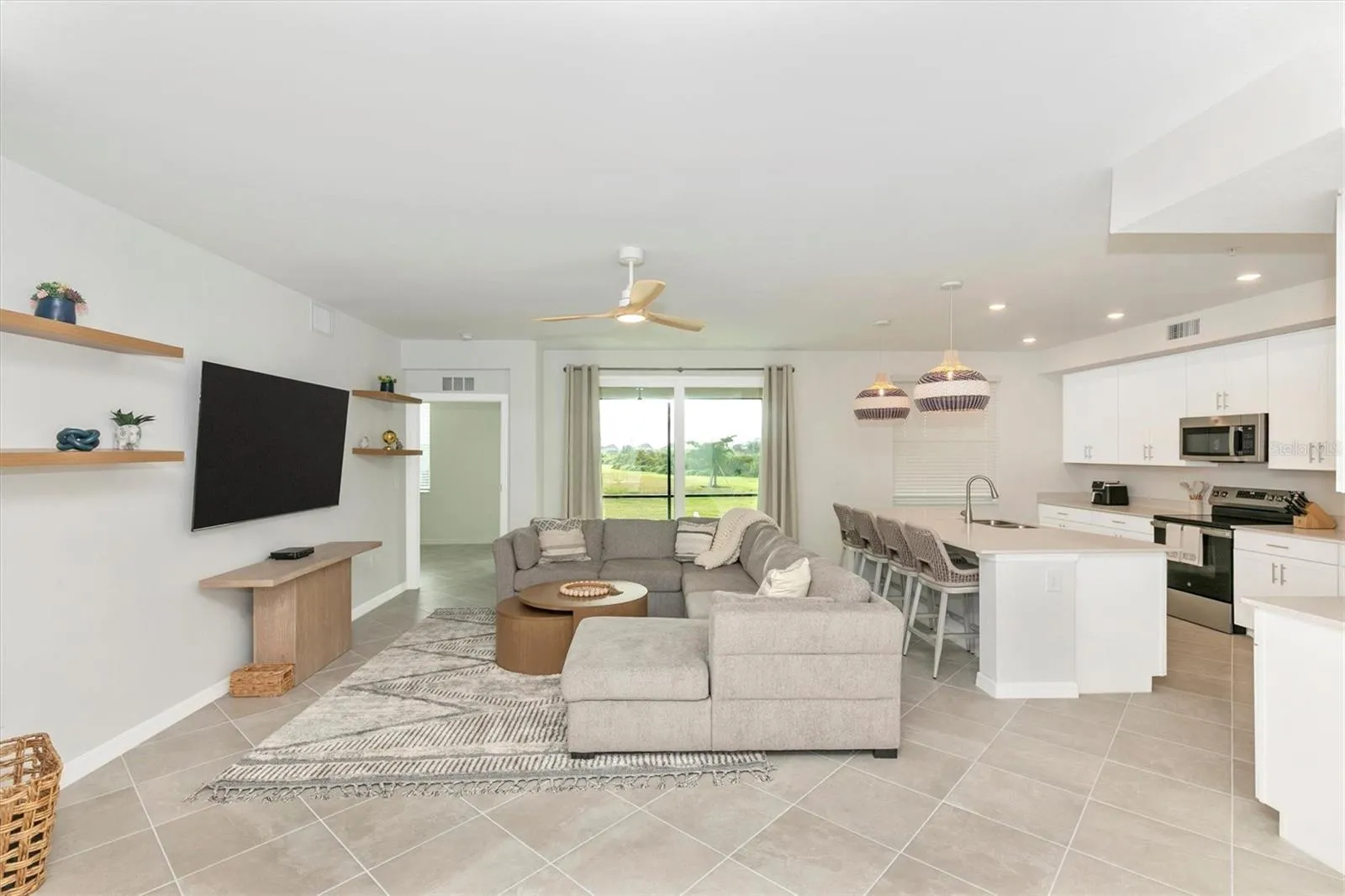 Stunning brand new 3-bedroom, 2-bathroom condo home, nestled in the exclusive, gated golf and country club community. With modern finishes and a spacious open-concept design, this pristine condo offers a perfect balance of luxury and convenience. The gourmet kitchen features stainless steel appliances, quartz countertops, and a large center island, ideal for both cooking and entertaining. The living and dining areas are flooded with natural light, creating a welcoming atmosphere for relaxation and gatherings.