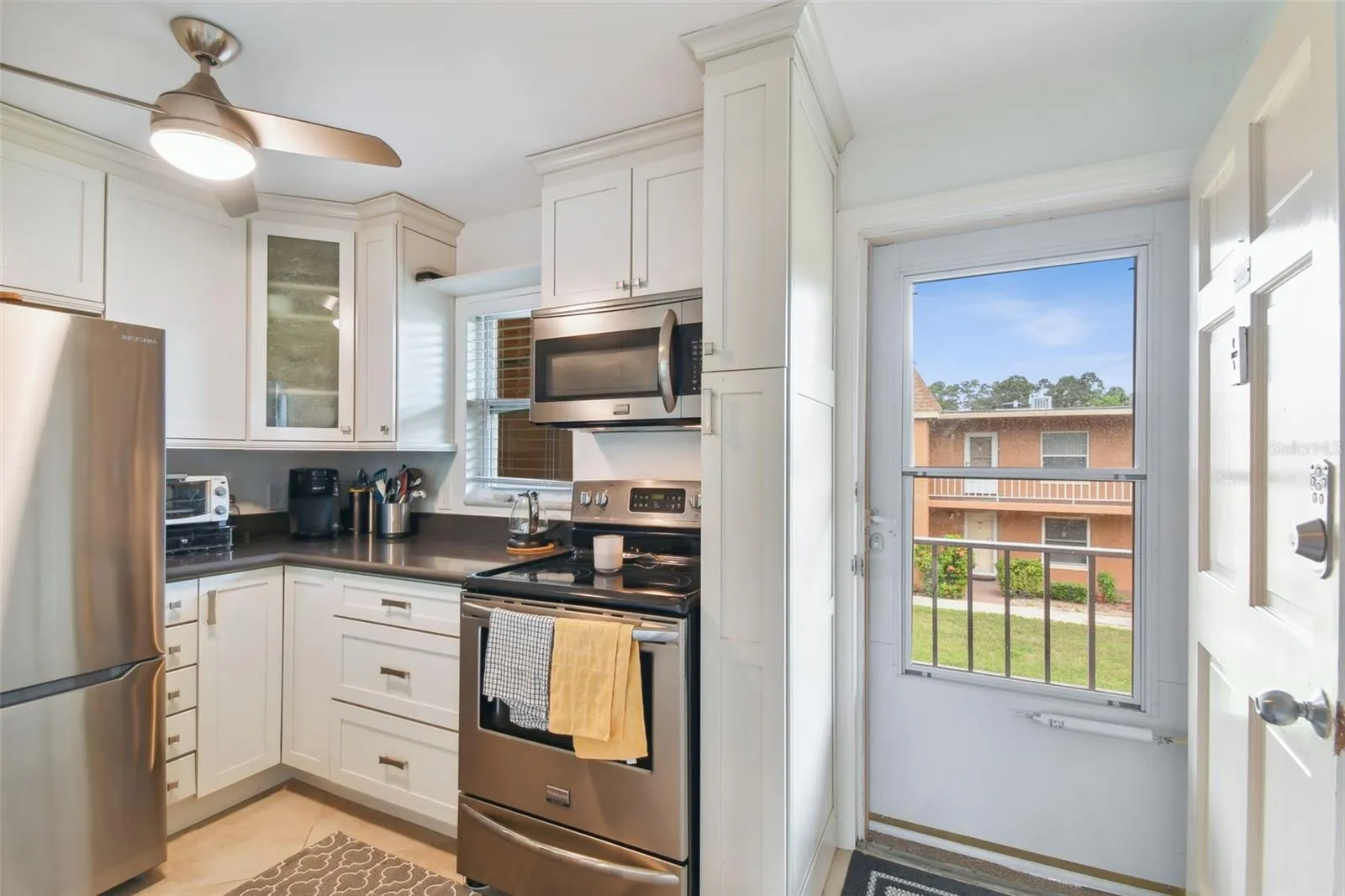 Stunning 2-Bedroom, 1-Bath Updated Condo in the Sought-After New Atlantis Community! This beautifully condo was fully rebuilt in 2014, this unit has been meticulously maintained, with only four months of occupancy per year, ensuring it remains in impeccable condition. Step inside to find spacious interiors enhanced by large, modern 18×18 ceramic tile flooring, adding both elegance and a sense of openness. The walls and ceilings have been taken down to their concrete forms and redone with new drywall and knockdown, offering a clean and sophisticated finish throughout. The kitchen is a chef’s dream with custom-designed birch cabinets, stunning granite countertops, and stainless steel appliances, including a brand-new refrigerator (2024). Bathroom has been tastefully updated, with the master featuring a luxurious walk-in shower with custom ceramic and quartz finishes. Key upgrades include new electrical panel and wiring, updated plumbing, and a new hot water tank (2022). Additional touches like wide colonial baseboards, mirrored closet doors, and new lighting and fans throughout make this condo move-in ready. Located in the highly desirable New Atlantis community, you’ll enjoy resort-style living with access to two pools, a hot tub, a fitness center, and a clubhouse featuring a pool table, computers, and a calendar full of social events. Outside, take advantage of the waterfront seating, outdoor grills, and direct access to Bonner Park with its beautiful walking trails. All of this just a few miles from the gorgeous Indian Rocks Beach and steps from the Intracoastal Waterway! With dining, shopping, and entertainment right outside your doorstep, this condo offers the perfect combination of convenience, comfort, and coastal living.