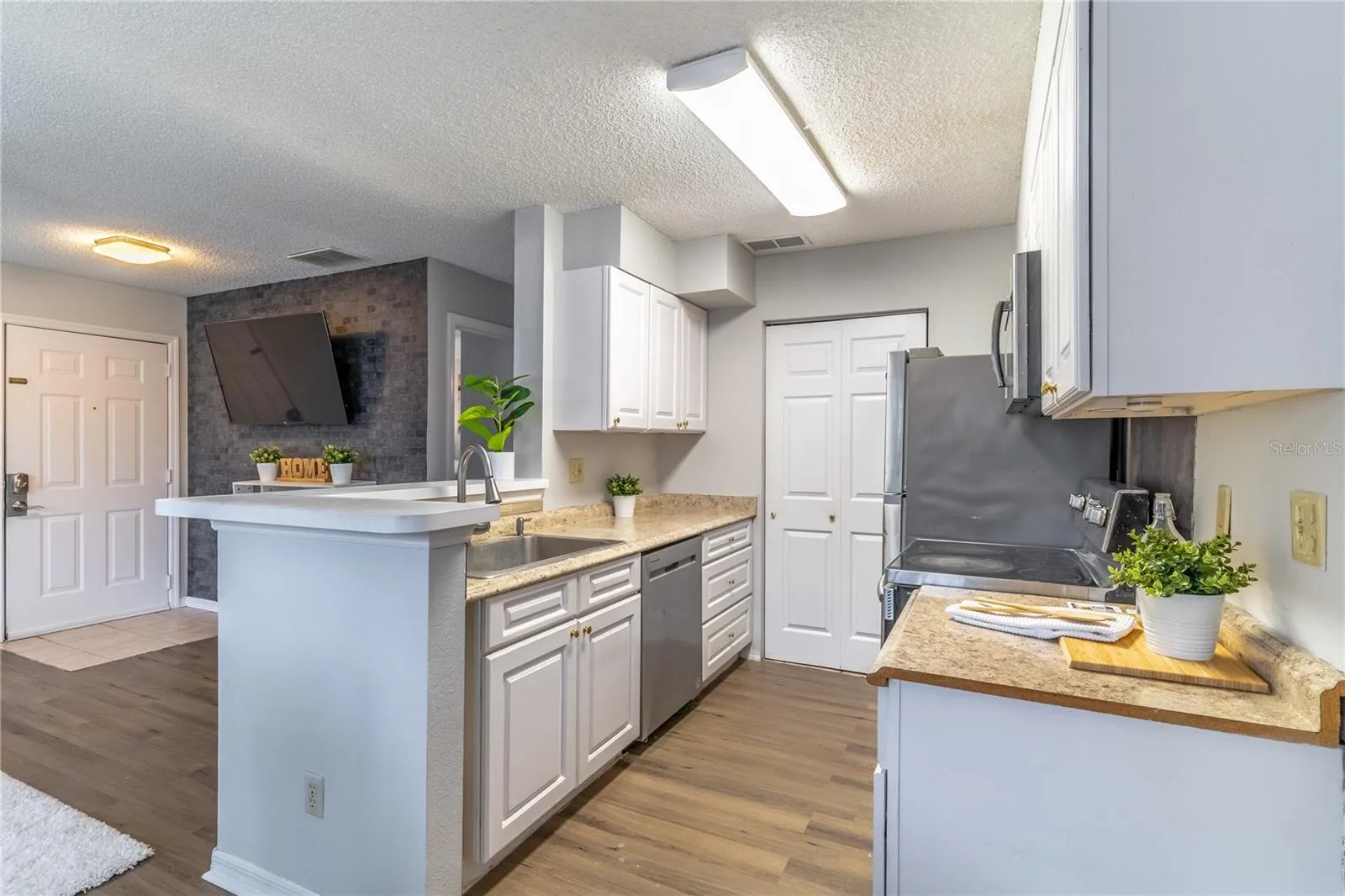 Welcome to this charming GROUND FLOOR 2-bedroom, 2-bathroom condo located in the desirable GOLF COMMUNITY of Metrowest. Located just minutes from shopping and restaurants, this home offers CONVENIENT ACCESS to Universal Studios, Islands of Adventure, and Valencia College East—all less than 5 miles away. COMMUNITY FEATURES – clubhouse with 2 pools and spas, fitness center, lighted tennis courts, racquetball, gazebo with summer kitchen/grills, carwash area. Step inside to an inviting OPEN CONCEPT KITCHEN AND FAMILY ROOM, filled with natural light. The kitchen features sleek stainless steel appliances, providing both style and functionality. Enjoy the ease of a FULL SIZE WASHER AND DRYER included with the unit. The spacious primary suite boasts a PRIVATE ATTACHED BATHROOM and a LARGE WALK IN CLOSET. The generously sized guest bedroom is conveniently located on the opposite side of the condo, complete with its own full bathroom, enhancing the SPLIT BEDROOM FLOOR PLAN for added privacy. Relax and unwind on the SCREENED IN PATIO, which includes an ADDITONAL STORAGE CLOSET—perfect for keeping your space organized. Overlooking the community POOL and HOT TUB, this condo offers resort-style living at its finest. Whether you’re seeking a full-time residence or a long term investment property this Metrowest condo provides the ideal blend of comfort, convenience, and lifestyle.