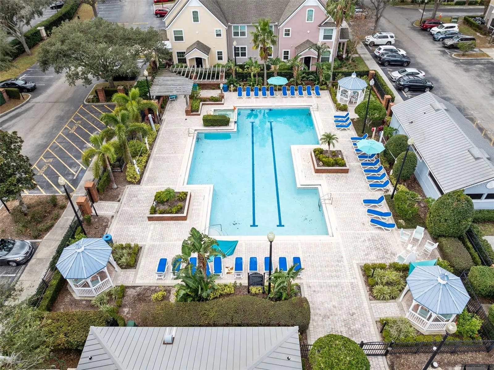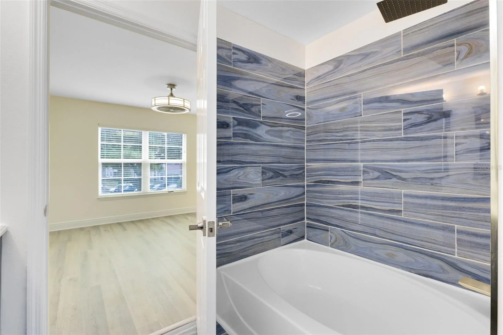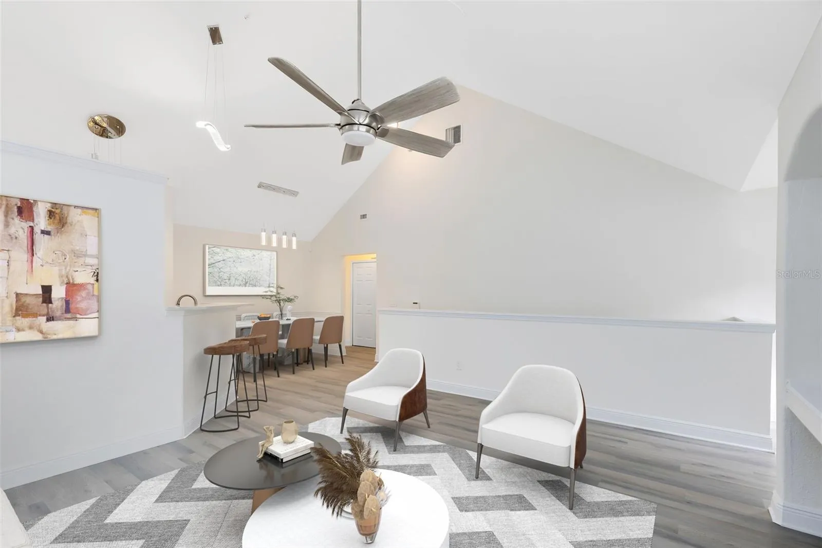 One or more photo(s) has been virtually staged. SELLER FINANCING options available! Welcome to this beautifully renovated 3 bedroom condo nestled within the sought-after Hamptons community. This second-floor walkup offers a private and serene living experience with elegant vaulted ceilings and no upstairs neighbors. The condo features all-new luxury vinyl plank and tile flooring and elegantly tall baseboards, creating a seamless blend of modern style and durability throughout the space. The kitchen boasts sleek quartz countertops, stainless steel LG appliances, cabinetry with a bold contemporary look, and a breakfast bar that opens to the spacious living area, perfect for both entertaining and casual dining. Natural light floods the condo through large, elevated windows, enhancing the bright and inviting atmosphere. Both bathrooms shine with their updated tile flooring, vanities, fixtures, hardware, and LED smart mirrors. A ring doorbell is included for added peace of mind. Freshly painted throughout. Residents of the Hamptons community enjoy a wealth of amenities, including a 24-hour guard, two swimming pools, a fitness center with a basketball court, scenic walking trails around the lake, several gazebos, and a pier. Centrally located, this condo is close to Universal Studios and the Mall at Millenia, providing easy access to premier entertainment, shopping, and dining options. This beautifully modernized condo invites you to experience the luxurious Hamptons lifestyle. Don’t miss the opportunity to make this exceptional condominium home yours!