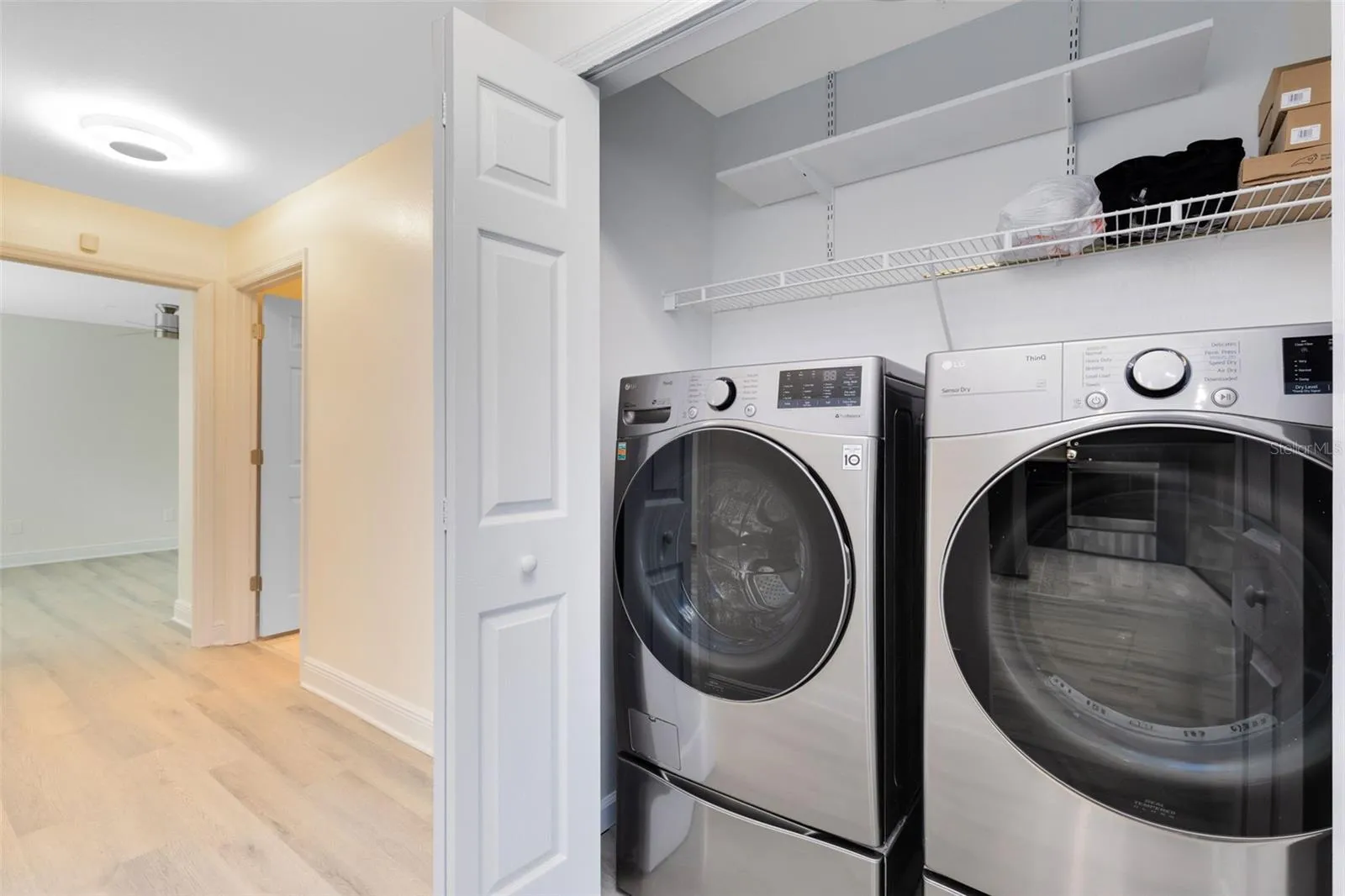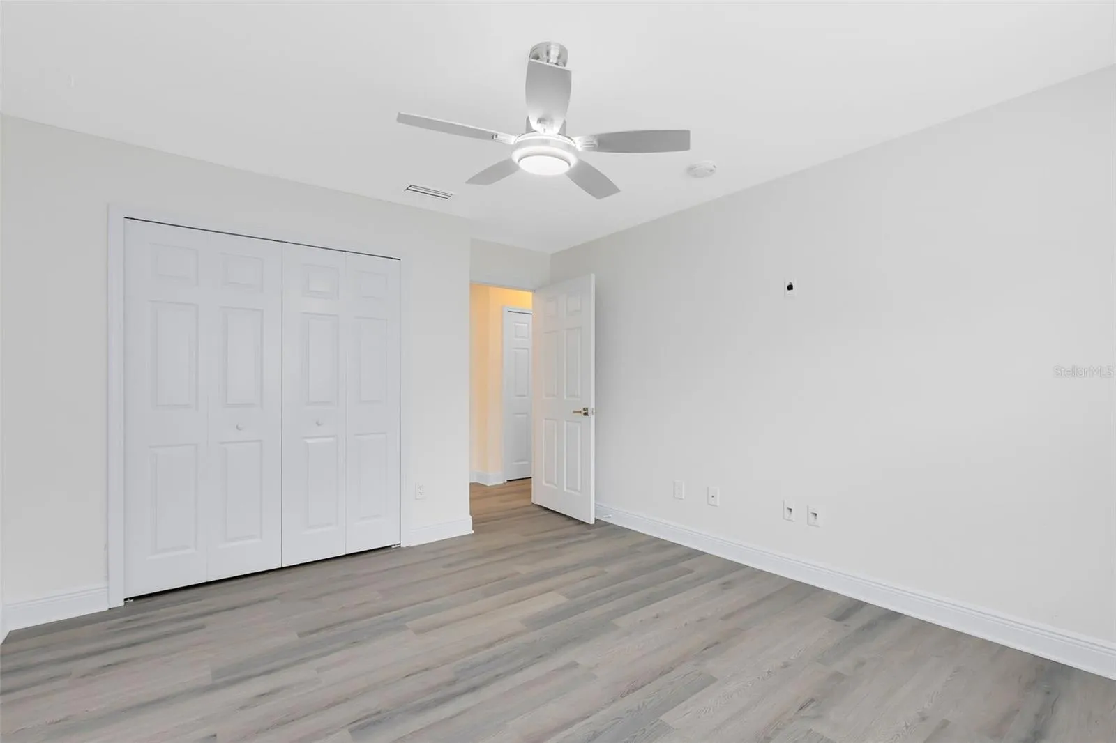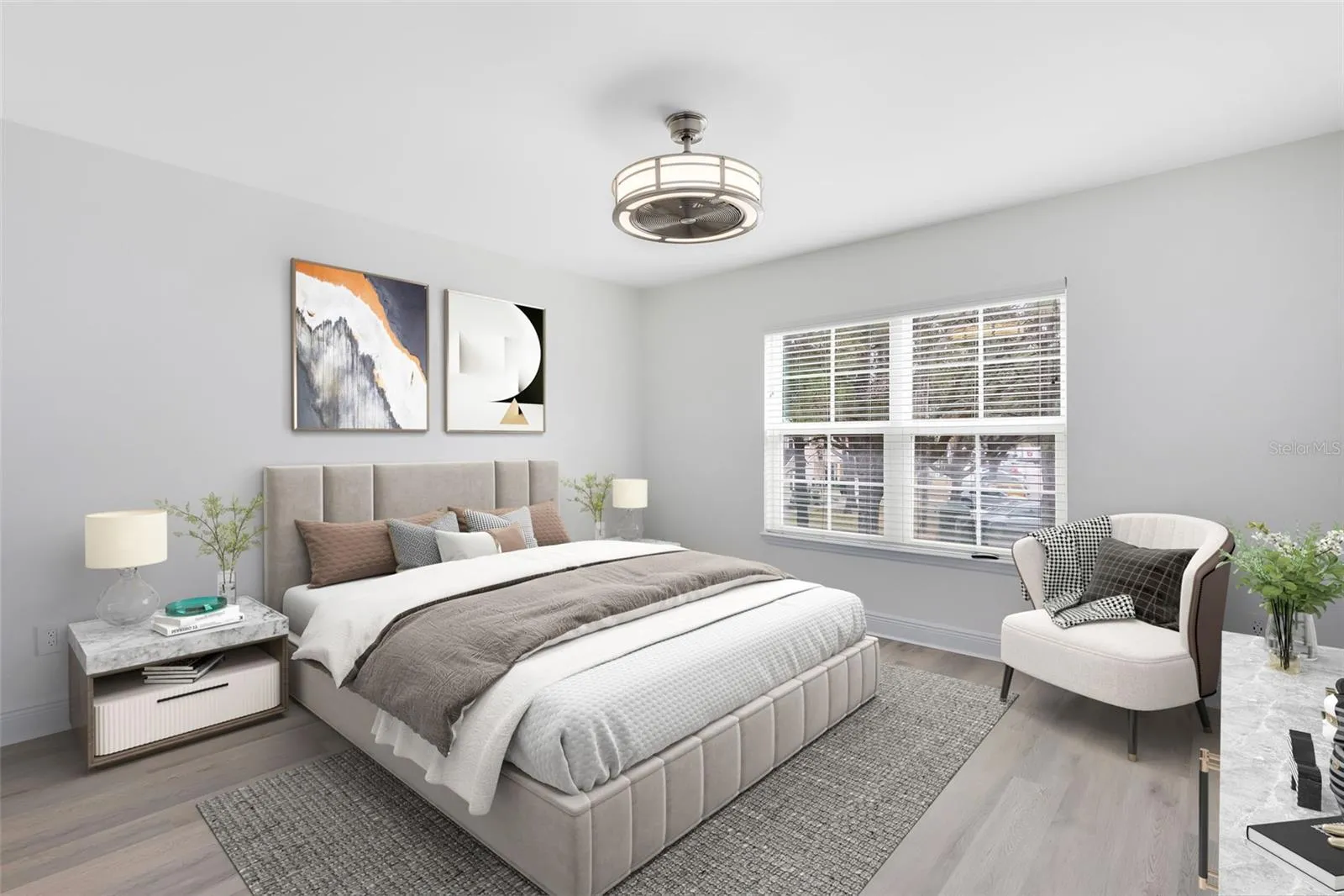 One or more photo(s) has been virtually staged. SELLER FINANCING options available! Welcome to this beautifully renovated 3 bedroom condo nestled within the sought-after Hamptons community. This second-floor walkup offers a private and serene living experience with elegant vaulted ceilings and no upstairs neighbors. The condo features all-new luxury vinyl plank and tile flooring and elegantly tall baseboards, creating a seamless blend of modern style and durability throughout the space. The kitchen boasts sleek quartz countertops, stainless steel LG appliances, cabinetry with a bold contemporary look, and a breakfast bar that opens to the spacious living area, perfect for both entertaining and casual dining. Natural light floods the condo through large, elevated windows, enhancing the bright and inviting atmosphere. Both bathrooms shine with their updated tile flooring, vanities, fixtures, hardware, and LED smart mirrors. A ring doorbell is included for added peace of mind. Freshly painted throughout. Residents of the Hamptons community enjoy a wealth of amenities, including a 24-hour guard, two swimming pools, a fitness center with a basketball court, scenic walking trails around the lake, several gazebos, and a pier. Centrally located, this condo is close to Universal Studios and the Mall at Millenia, providing easy access to premier entertainment, shopping, and dining options. This beautifully modernized condo invites you to experience the luxurious Hamptons lifestyle. Don’t miss the opportunity to make this exceptional condominium home yours!