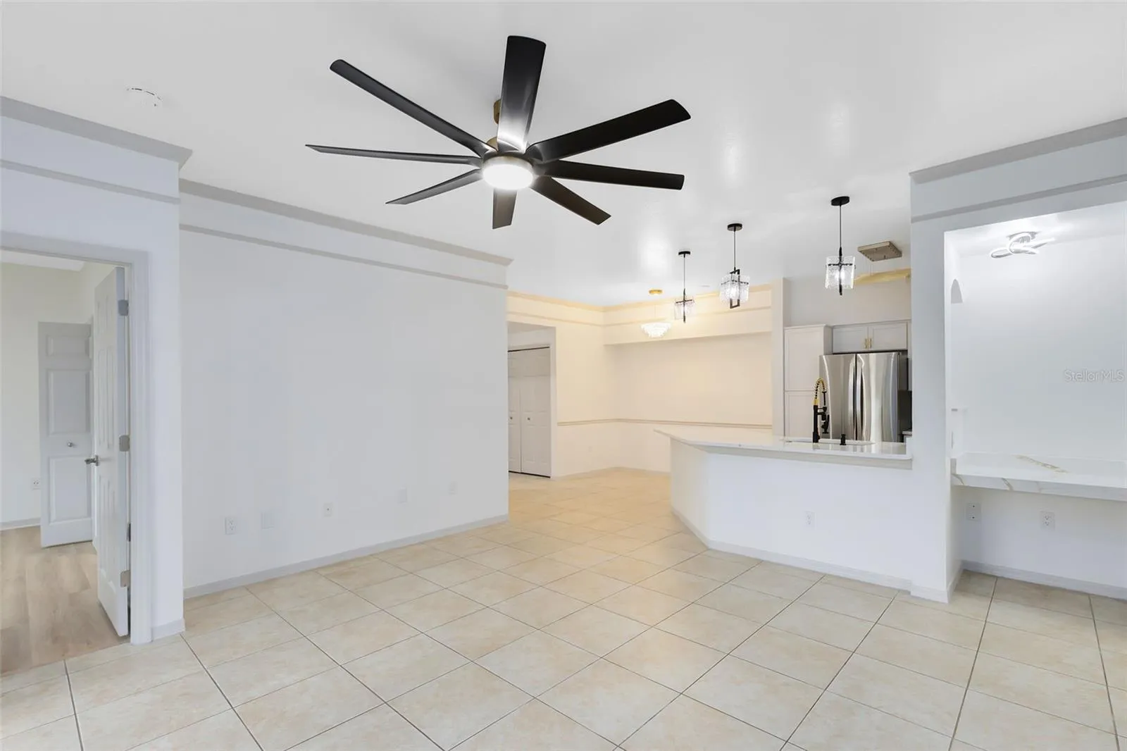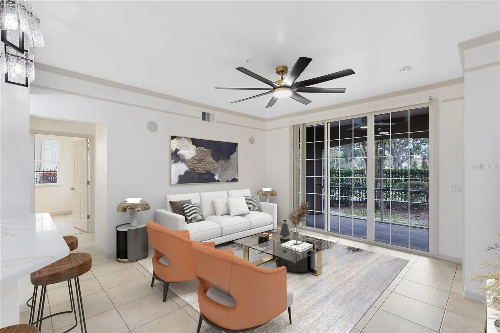 One or more photo(s) has been virtually staged. SELLER FINANCING options available! Located in the desirable Hamptons of Metrowest, this 4 bedroom, 2 bath condo home will dazzle you with its modern upgrades exemplifying style and convenience. Each of the four bedrooms has been updated with brand new luxury vinyl plank flooring. Modern improvements in the kitchen include a regal quartz countertop with beautiful gold veining that ties wonderfully with the color of the sleek, elegant fixtures and hardware, all rounded out with stainless steel LG appliances. New, upgraded vanities in both bathrooms are further enhanced by stylish fixtures and smart LED mirrors. For those looking for private outdoor space, enjoy the private, screened in patio, with sliding glass doors. A ring doorbell is included for added peace of mind. Fresh paint throughout. Water heater was replaced in 2023.