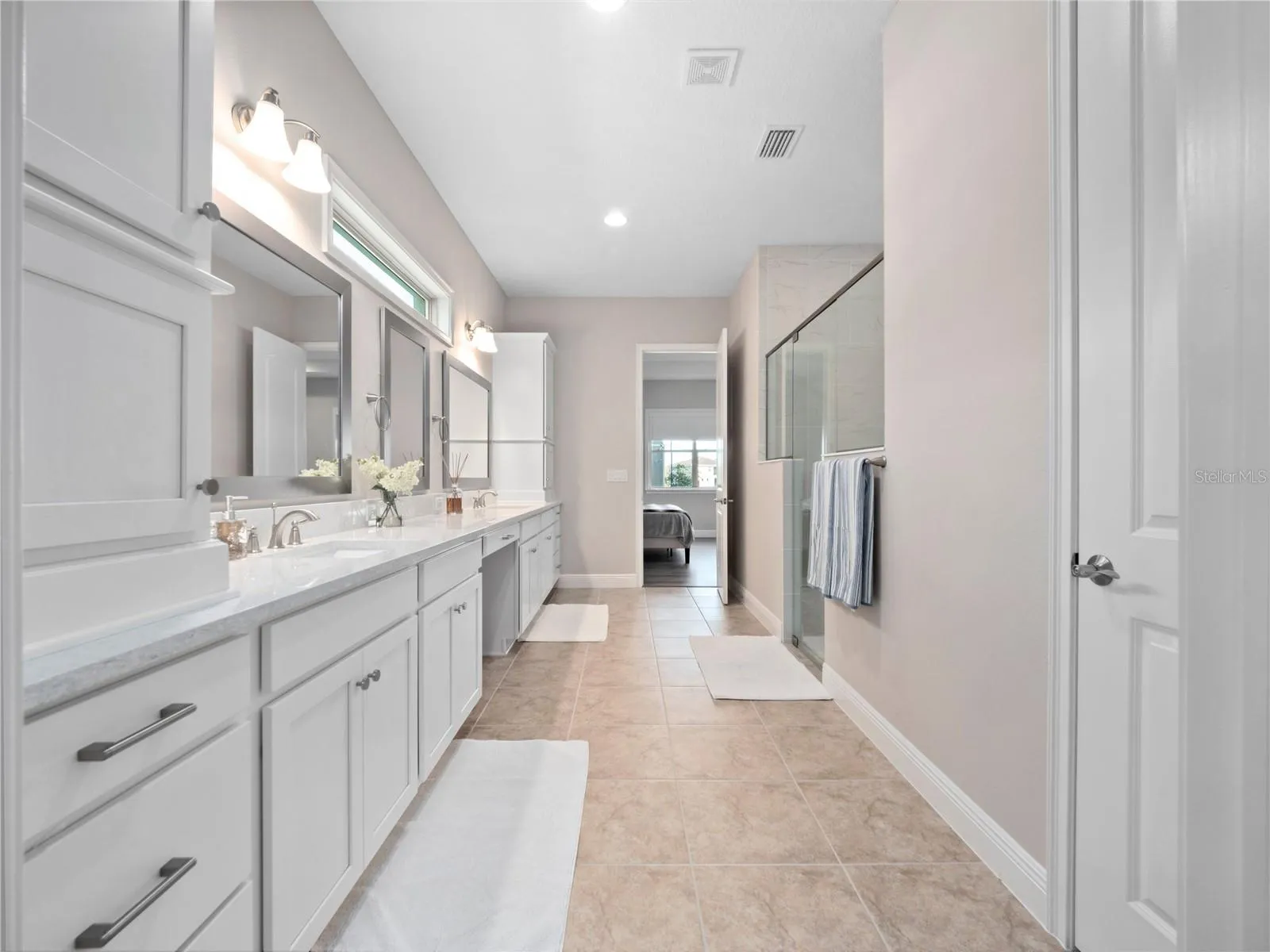 One or more photo(s) has been virtually staged. NEW $50,000 Price ADJUSTMENT!!!Priced Below Market Value! NO CDD! Situated in the Master Planned GATED GOLF Community of Eagle Creek. Explore the Epitome of Luxury Living in Lake Nona with this Modern Two-Level Home, spanning over 3700 square feet of living space; boasting FIVE spacious bedrooms, FIVE FULL Bathrooms, and a Gourmet Kitchen designed for the Culinary Enthusiast. The Master Suite is strategically situated on the ground floor for privacy and convenience. This Oakmont floor plan offers a huge Master walk-in closet with 2 entries, one off the large laundry room, the other leading into the Master Bedroom. The open-concept floor plan includes a generous dining/family room combination with glass sliding glass doors that open to a covered patio, offering views of the pond. Upstairs, the 5th Bedroom features another glass sliding door to a large walk-out balcony, and en-suite bathroom. Upstairs there is a large media room/flex room that you can create a Theatre room or game room perfect for entertaining. Immerse yourself in resort-style amenities within a vibrant community, all located mere minutes from Orlando International Airport, the VA Hospital, and Lake Nona’s Medical City. With easy access to shopping, dining, premier healthcare, and entertainment, this property melds modern comfort with an exceptional lifestyle.