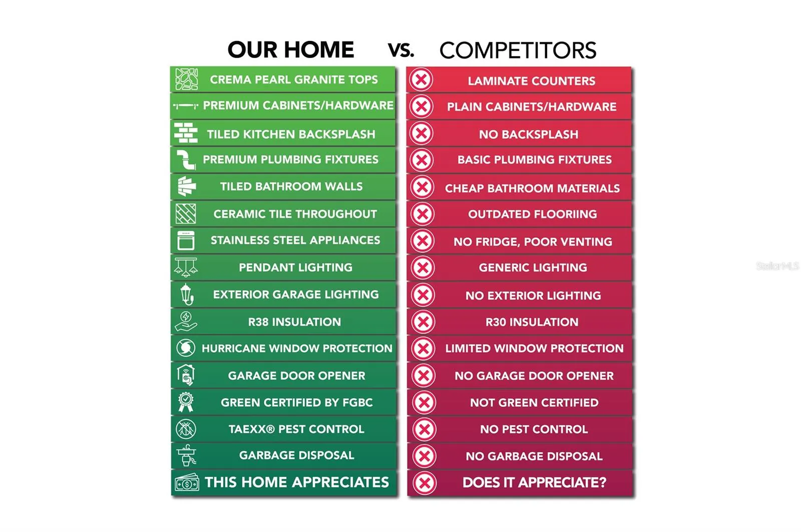 The home boasts Magnisi 8×12” white upgraded tiled walls in in the second bath/shower, a Crema Pearl granite vanity top, and Moen Chateau chrome faucets and shower/tub trim kits. The ampleness of this home continues with a utility room, and additions such as energy-efficient R-4.1 insulation on concrete exterior walls, Taexx tubes for pest control, and fabric hurricane shutters for every window. The Florida friendly landscaped yard is complemented by an irrigation system with a rain sensor to help you maximize your efficiency.