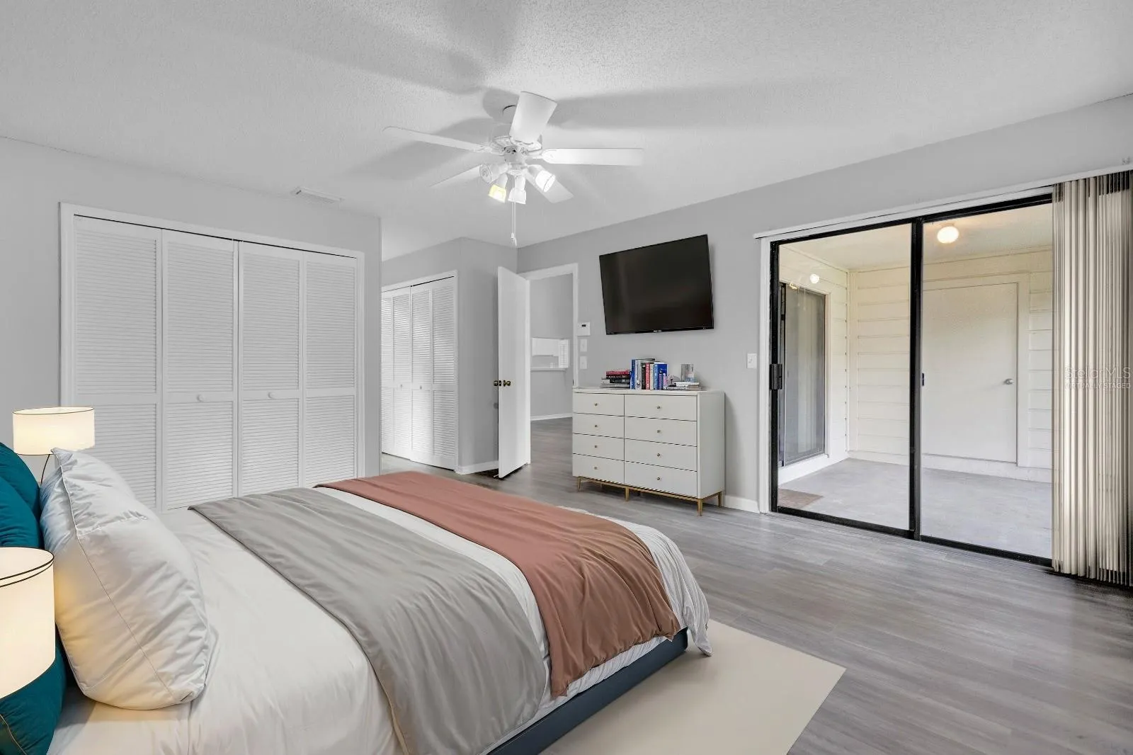 The updated primary bathroom features modern tile, Moen faucets, and safety bars for comfort and style. Enjoy extra privacy as a corner unit, and forget about yard work—lawn maintenance is included!